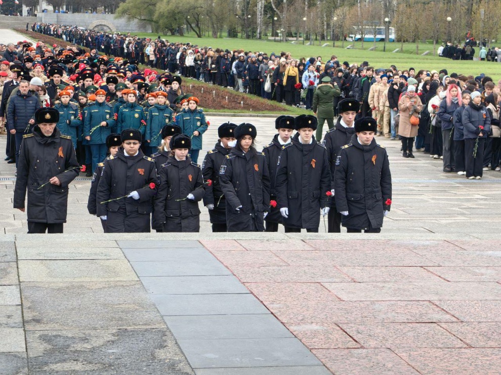 Сегодня на Пискарёвском мемориальном кладбище прошла традиционная акция «Памяти павших будьте достойны», посвященная 80-летию Победы в Великой Отечественной войне. В мероприятии приняли участие Министр энергетики Российской Федерации Сергей Цивилев, вице-губернатор Санкт‑Петербурга Наталья Чечина, вице-губернатор Санкт‑Петербурга Сергей Кропачев, представители органов государственной власти, ветеранских организаций, школьники, курсанты кадетских училищ, воспитанники подростково-молодежных клубов, юнармейцы.
