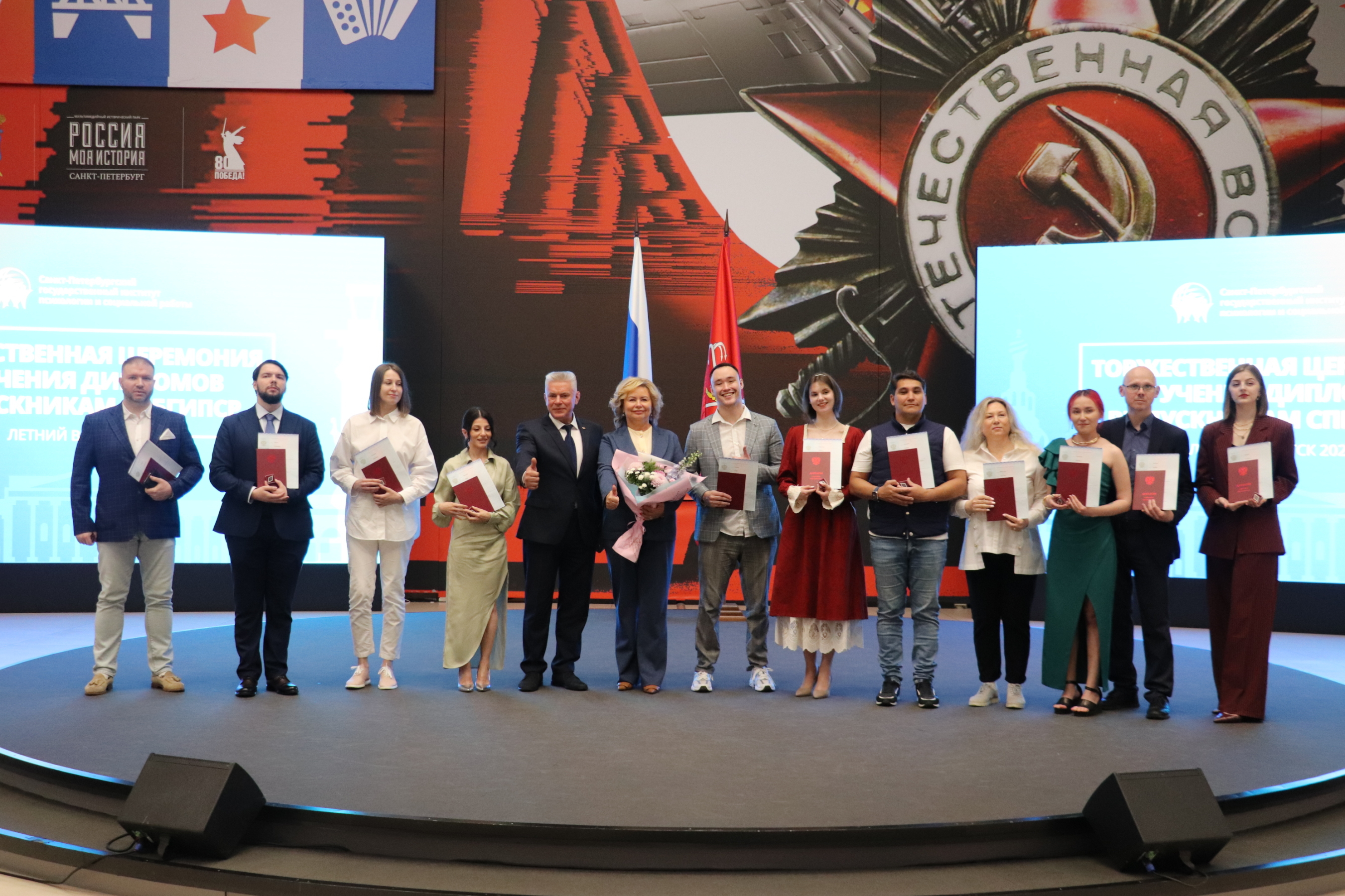 Торжественная церемония вручения дипломов выпускникам Санкт‑Петербургского государственного института психологии и социальной работы состоялась в Историческом парке «Россия – моя история». В этом году обучение в подведомственном Комитету по социальной политике Санкт‑Петербурга вузе по образовательным программам социальная работа, психология, конфликтология и специальное (дефектологическое) образование завершили 244 человека, из них 47 человек с отличием. Выпускников и их близких, руководство и преподавателей единственного городского вуза поздравили вице-губернатор Санкт‑Петербурга Наталья Чечина, председатель постоянной комиссии по социальной политике и здравоохранению Законодательного Собрания Санкт‑Петербурга Александр Ржаненков, председатель Комитета по социальной политике Санкт‑Петербурга Елена Фидрикова.