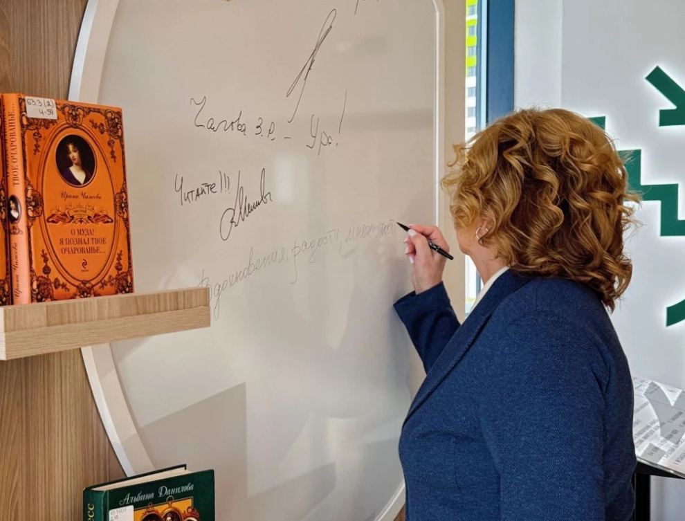 «Чтение – замечательная форма досуга, способствующая интеллектуальному, духовному и творческому развитию молодежи. Библиотеки становятся популярными у петербуржцев, эту традицию необходимо сохранять и развивать, привлекая новых молодых посетителей», - отметила Наталья Чечина. Высоко оценив работу учреждения, вице-губернатор оставила добрые пожелания на маркерной доске в одном из залов.