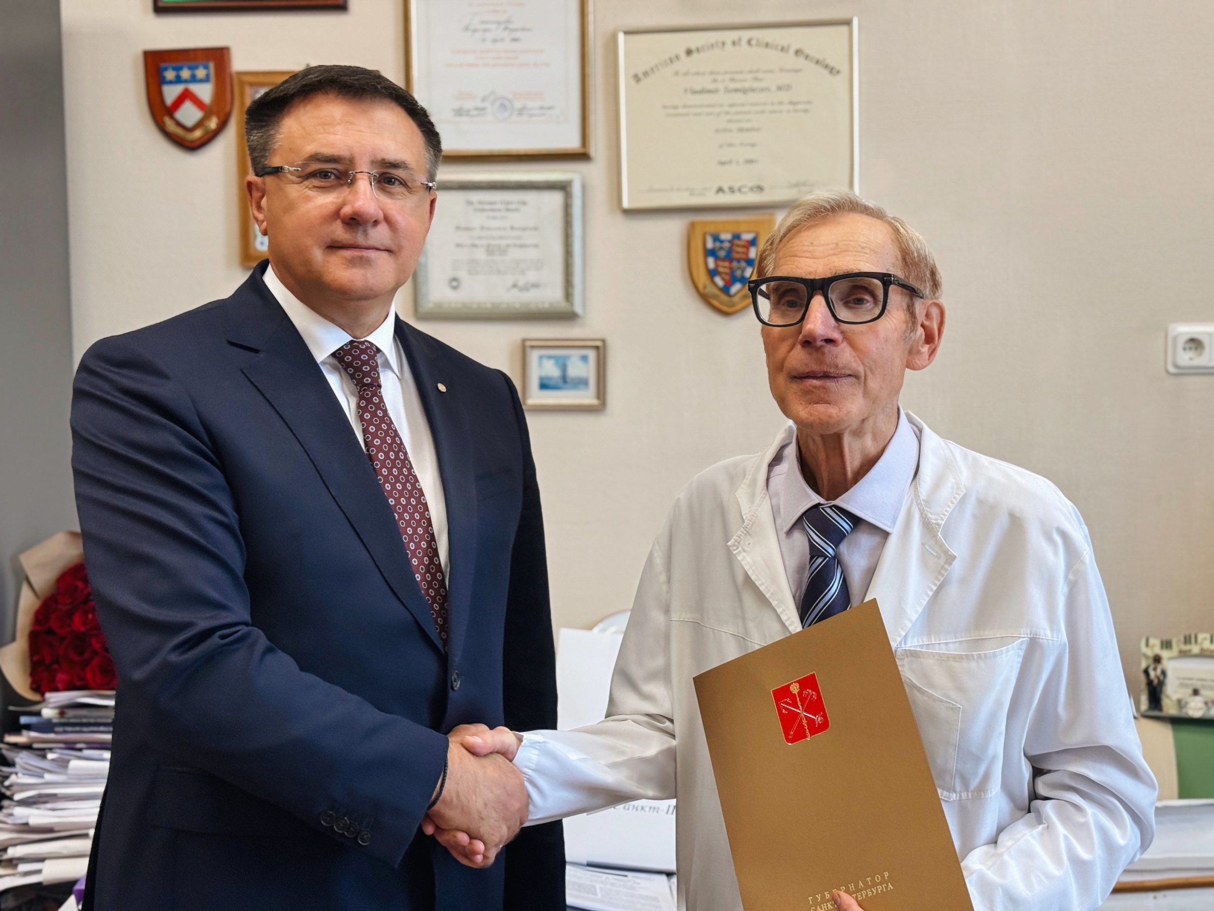 «Передал Владимиру Федоровичу поздравления от Губернатора Санкт‑Петербурга Александра Дмитриевича Беглова, поблагодарил за вклад в развитие отечественной онкологии и петербургского здравоохранения. Пожелал крепкого здоровья, благополучия и успехов в его непростом, но таком важном деле» – отметил Владимир Омельницкий.