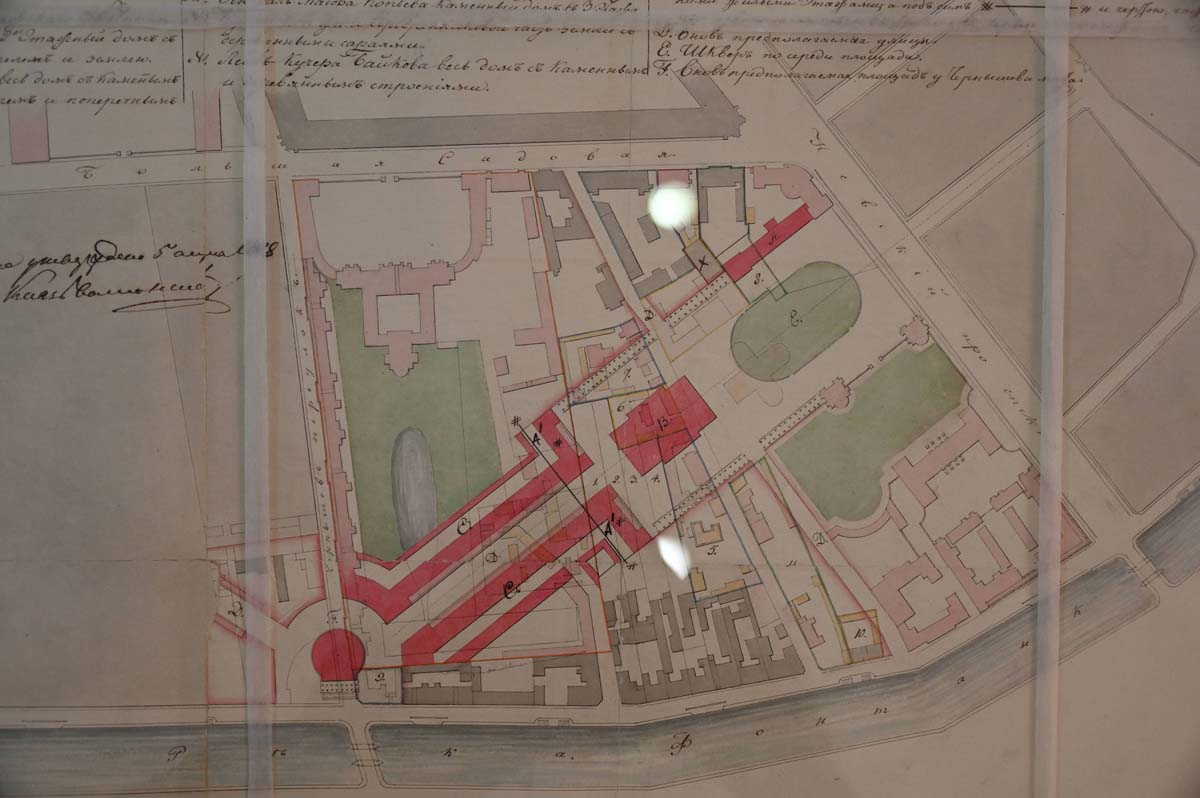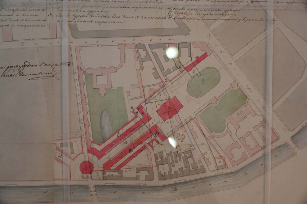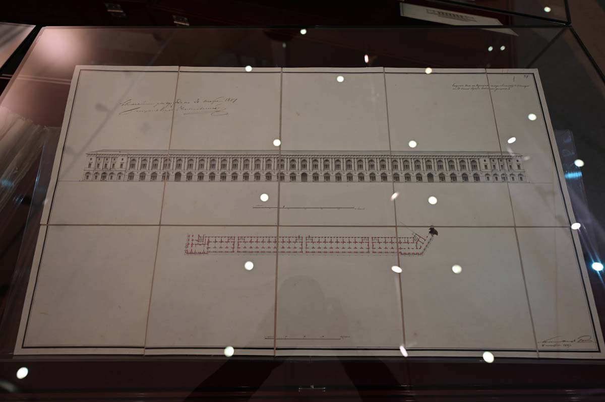 На выставке представлены более 350 уникальных документов — императорские указы, рапорты, прошения и письма Карла Ивановича Росси, его проектные чертежи, эскизы и рисунки. Многие из материалов экспонируются впервые. Куратор выставки Татьяна Богданова провела для специалистов КГА экскурсию по экспозиции, рассказала про жизнь великого зодчего — от рождения, до последних лет жизни, о его приезде в Петербург, обучении и первых самостоятельных шагах, о работе в Москве и провинции, в Петербурге и окрестностях.