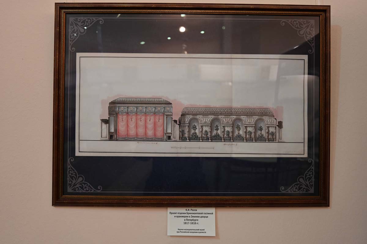Помимо планов и проектов дворцов, площадей и фасадов зданий, вниманию посетителей выставки представлены также эскизы предметов декоративно-прикладного искусства – ваз и люстр. Специалисты КГА также увидели оригинальные эскизы фасадов здания Министерства народного просвещения, в котором сотрудники государственных ведомств трудятся ежедневно, а также планировочную схему уникального ансамбля площади Островского с улицей, названной в честь великого зодчего.