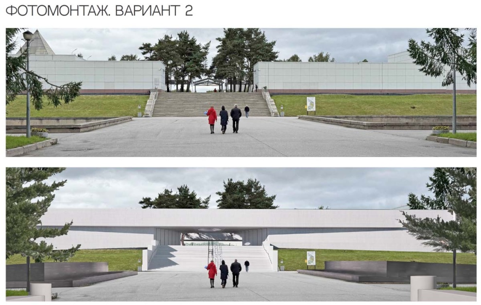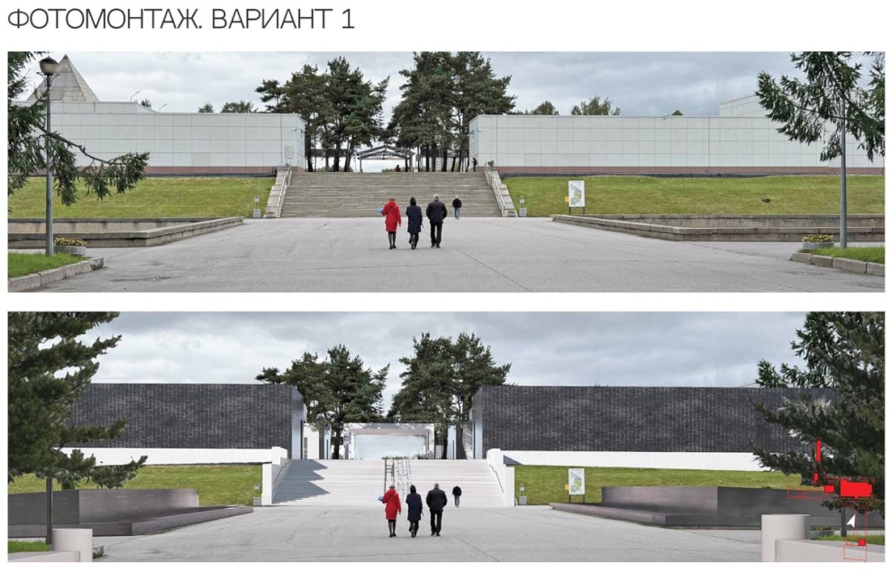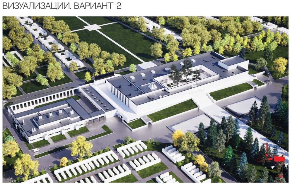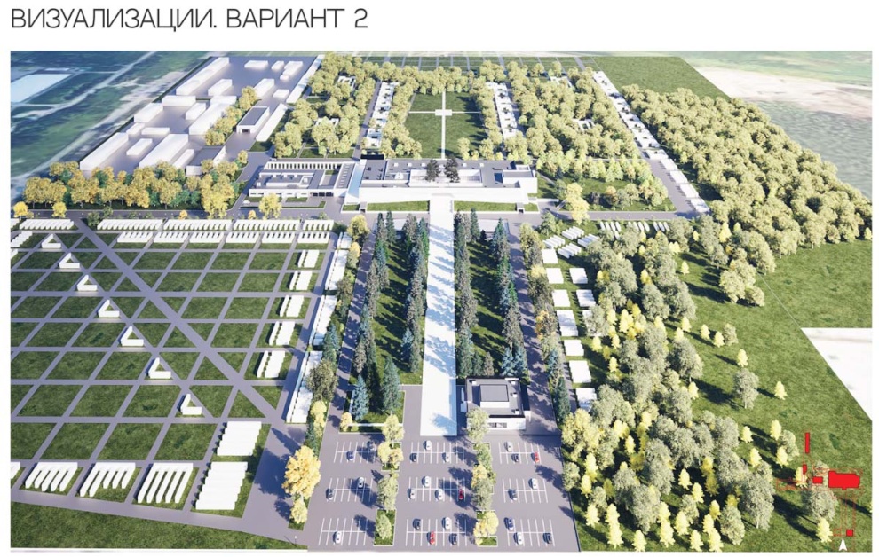 Как рассказал главный архитектор ООО «Сириус» Евгений Стопкин — предложено два концептуально разных подхода к обновлению комплекса. Первый вариант предполагает сохранение узнаваемого стиля советского модернизма. В основе композиции — принцип развития пространства по трем основным осям. Второй вариант — создание абсолютно нового минималистичного образа, где крематорий представлен в виде «единой белой плашки», парящей над стилобатом — «зеленым холмом».