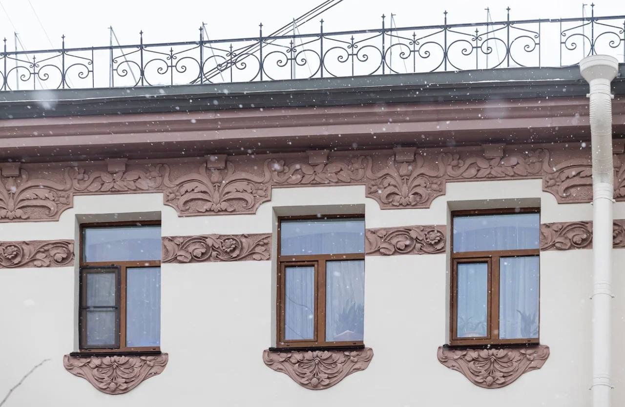 С лицевых фасадов исторического дома №20 по улице Бармалеева (на углу с Малым проспектом Петроградской стороны) после капитального ремонта сняты строительные леса. В ходе работ дому был возвращён его уникальный лепной декор: восстановлены «шубная» штукатурка, уникальные «пояса» с растительным орнаментом и красивое оформление оконных проемов. Также установлены массивные деревянные, филёнчатые двупольные двери.