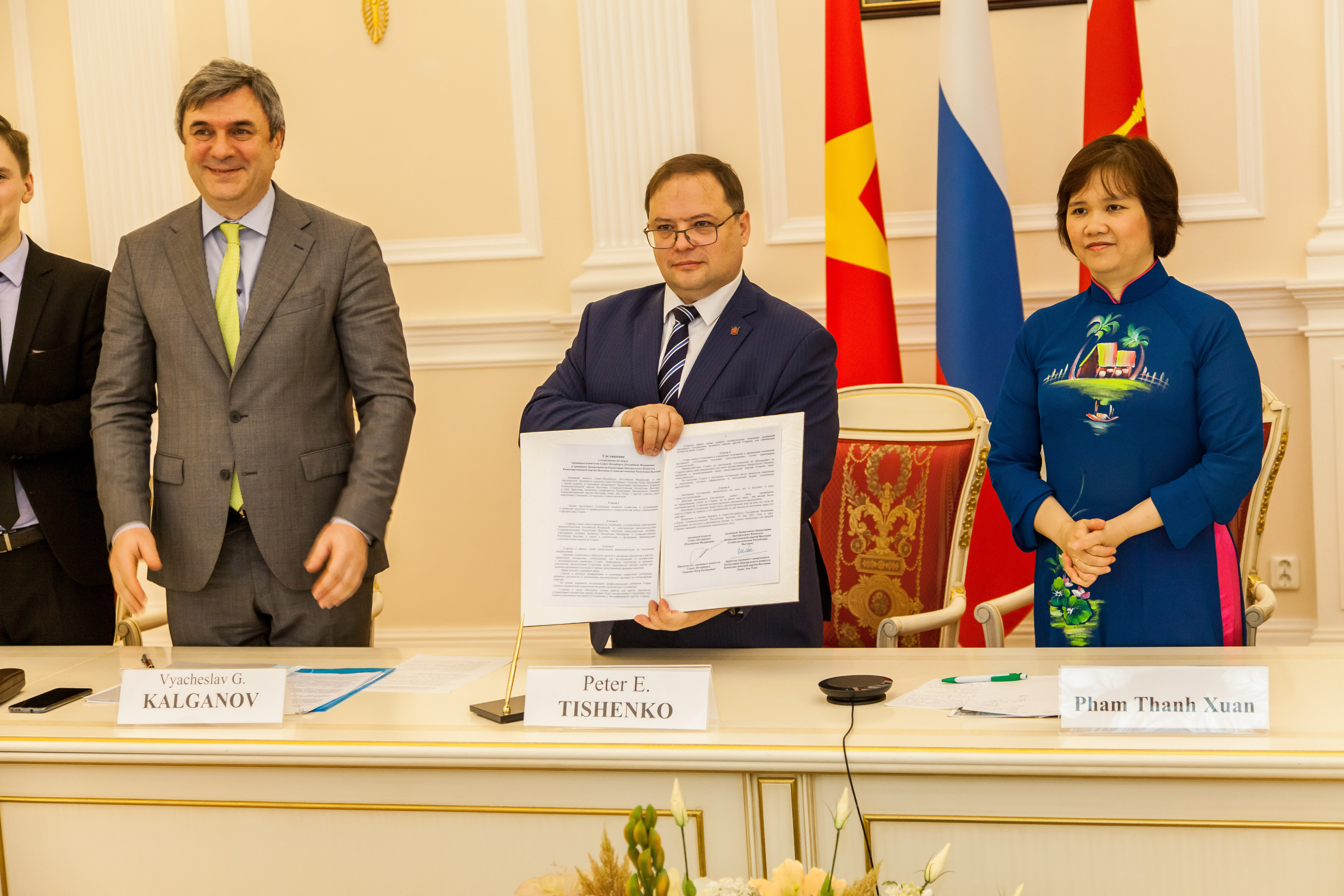 24 мая 2021 года в Смольном состоялось подписание соглашения о сотрудничестве между архивистами Петербурга и коллегами из Вьетнама. При поддержке Комитета по внешним связям Санкт‑Петербурга прошла онлайн церемония подписания соглашения между Архивным комитетом Санкт‑Петербурга и Архивным департаментом Канцелярии ЦК Коммунистической партии Вьетнама. На церемонии присутствовала директор Департамента России – Восточной Европы – Средней Азии Международного отдела ЦК КПВ Ле Тхи Тхань Ли и заместитель председателя Ассоциации вьетнамских граждан в России Нгуен Куок Хунг.