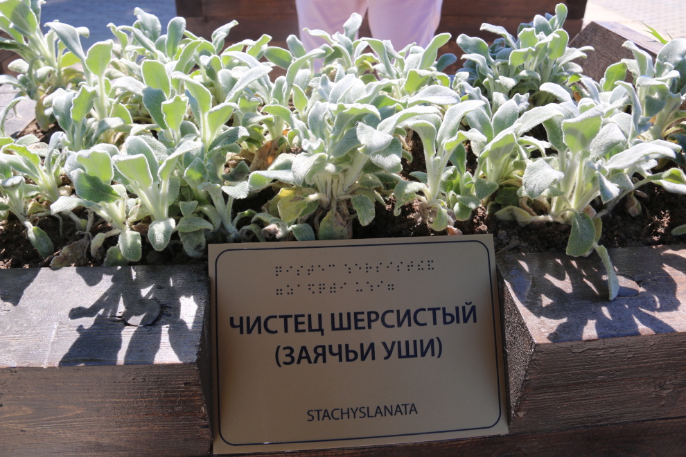 Недалеко от главного входа размещена площадка для слабовидящих посетителей. Участок замощен специальной плиткой, которая направляет движение к «Саду ощущений». Здесь в высоких деревянных контейнерах высажены растения, имеющие особые обонятельные и тактильные свойства (лаванда, душица, мята, тимьян, шалфей и др.). Детские городки приспособлены для ребят, передвигающихся на колясках.