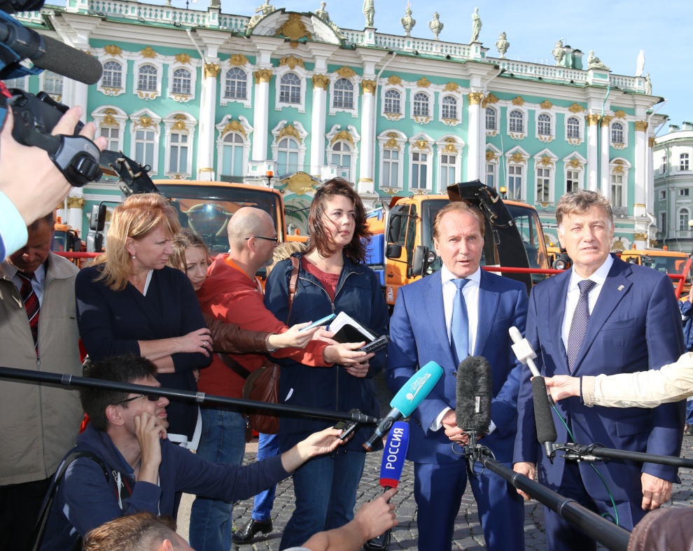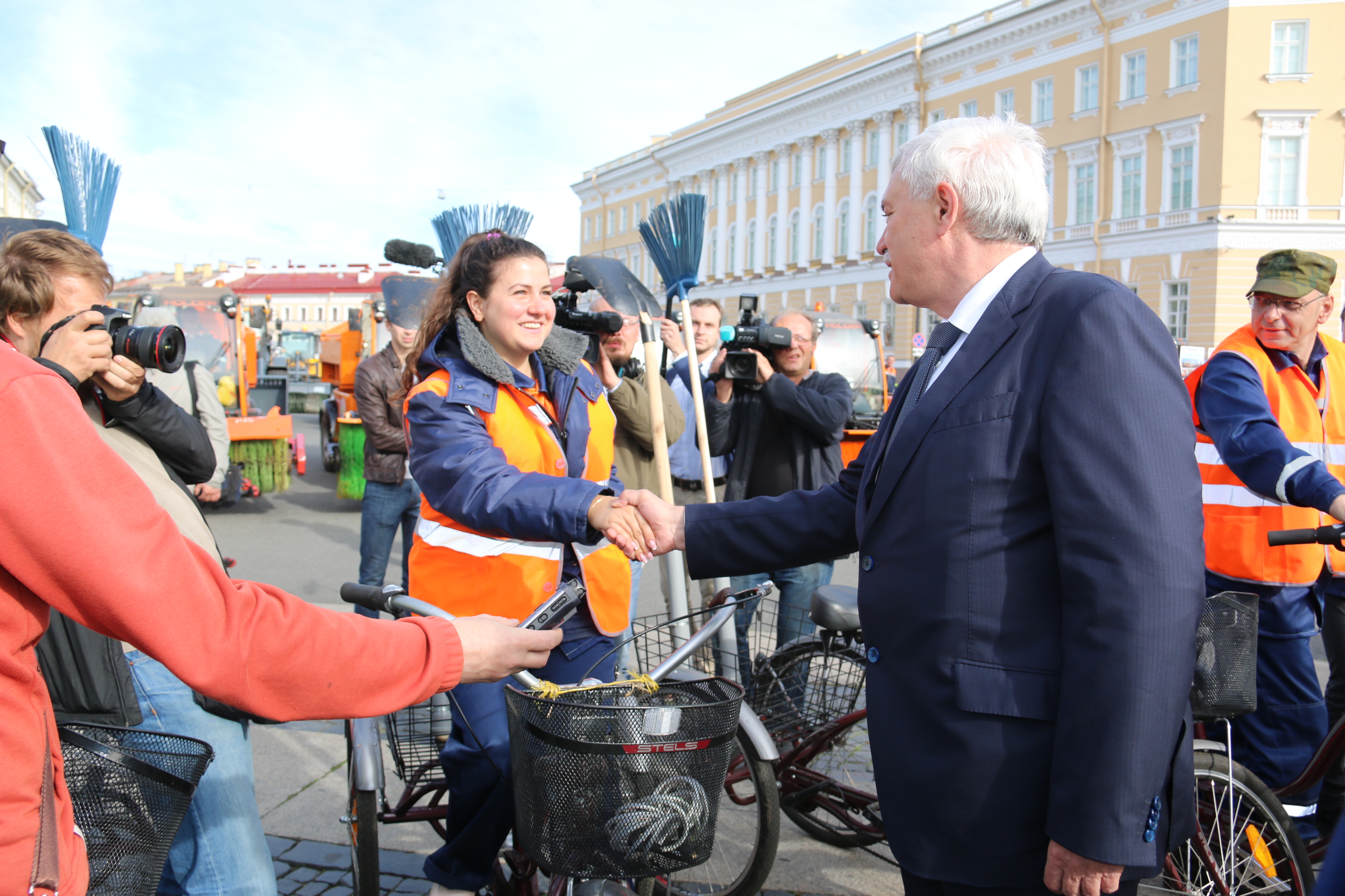 «То, что площадь перед Эрмитажем в этот понедельник заняла рабочая техника, вполне символично: убирать Петербург – это тоже искусство», - говорит председатель Комитета по благоустройству Владимир Рублевский.