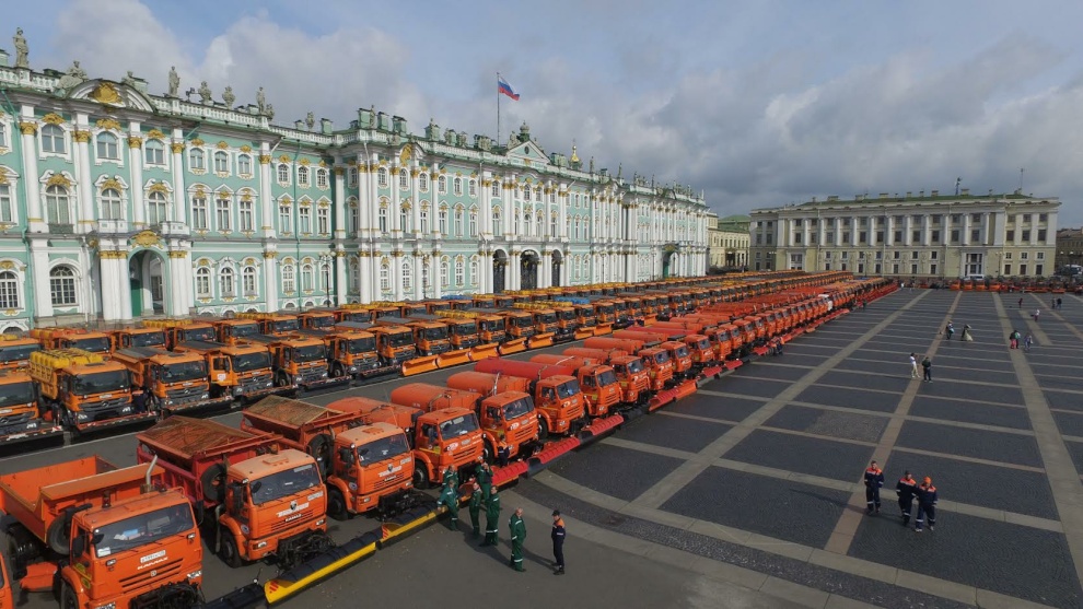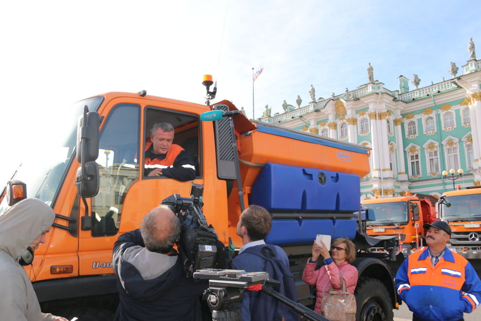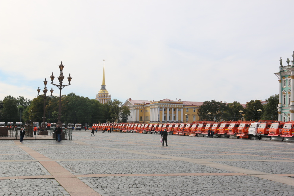 «Зима началась для дорожников неожиданно» - 12 сентября на Дворцовой площади стартовал смотр готовности уборочной техники. Подобное мероприятие проходит в самом сердце города уже во второй раз.