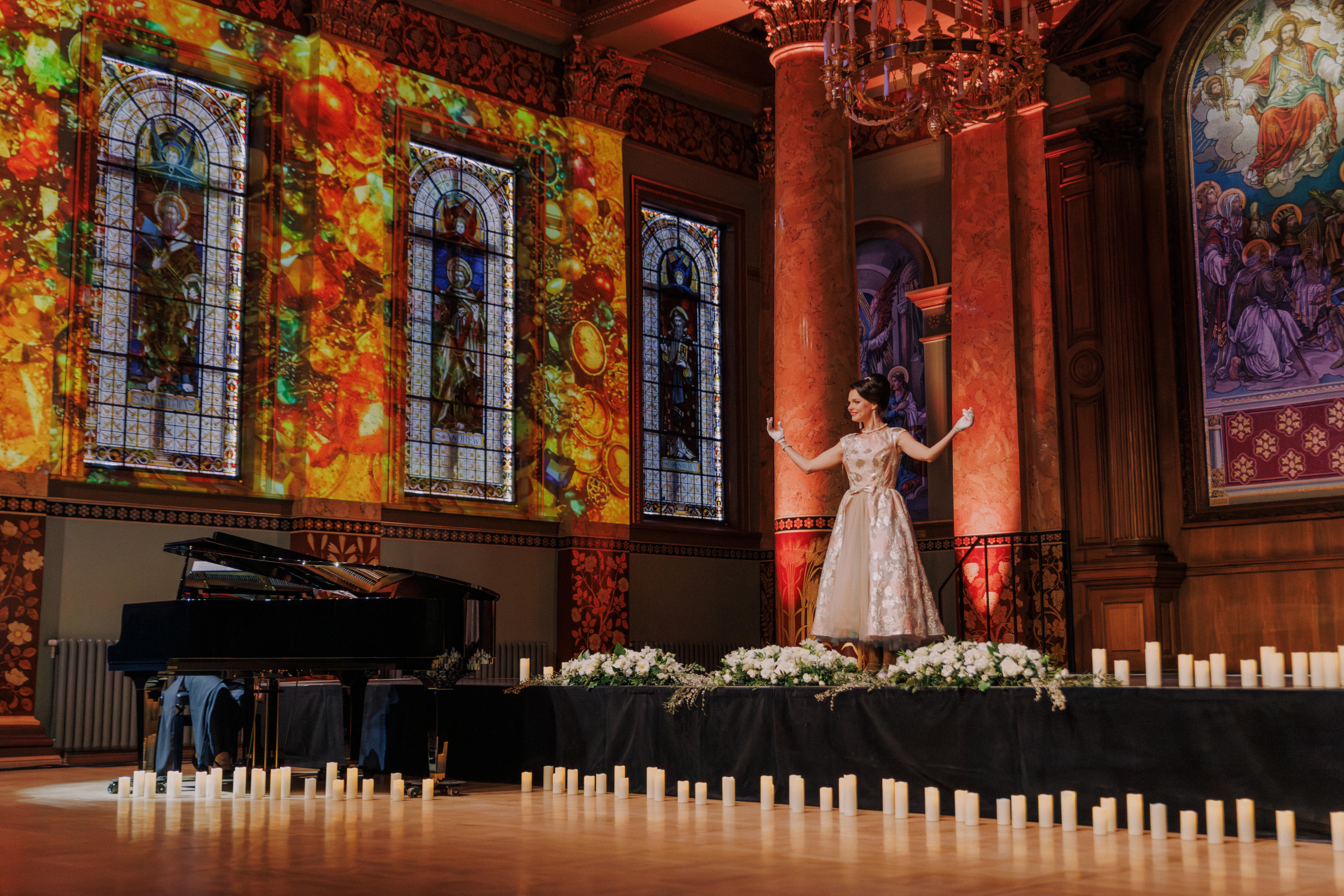 Часть экскурсии посвящена интерьеру Концертного зала, который современники называли «райским садом». Гости исследуют элементы исторического убранства: крупнейшее в России собрание английских витражей, мозаичные панно, которым посвящал стихи Александр Блок, и богатый декоративный ансамбль в уникальном для бывшего церковного зала викторианском стиле.