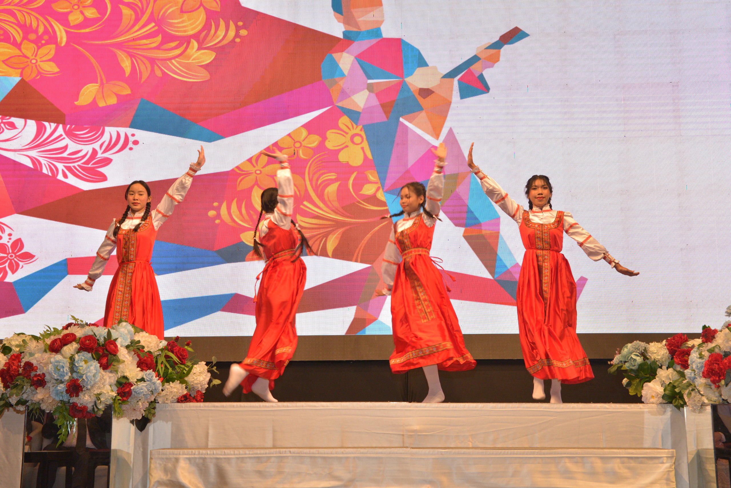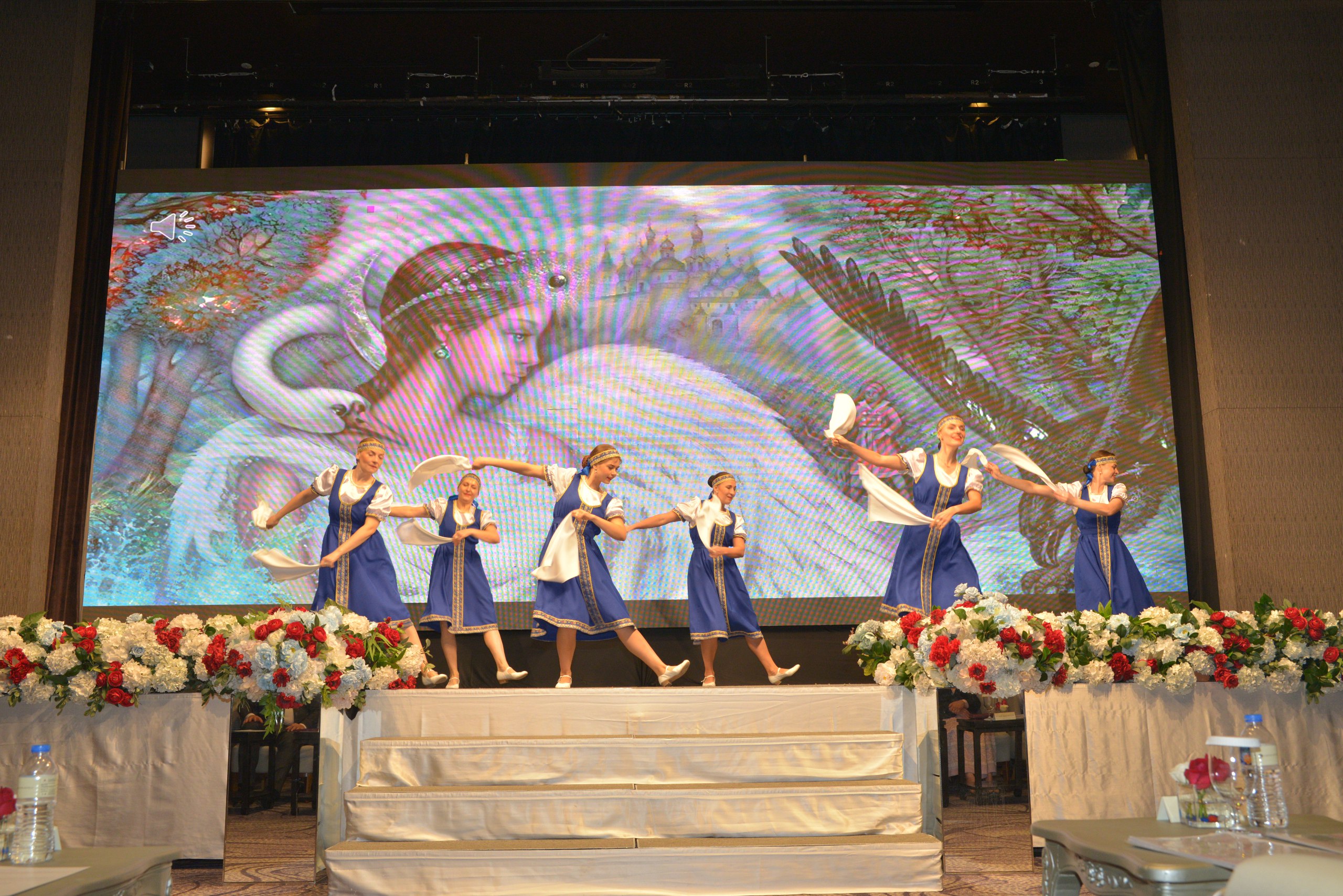 Танцевальные номера российских исполнителей и песни белорусского коллектива, а также видеоклипы о Санкт‑Петербурге и Мьянме стали украшением торжественной церемонии.