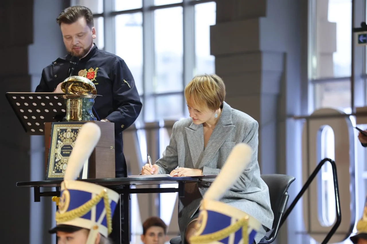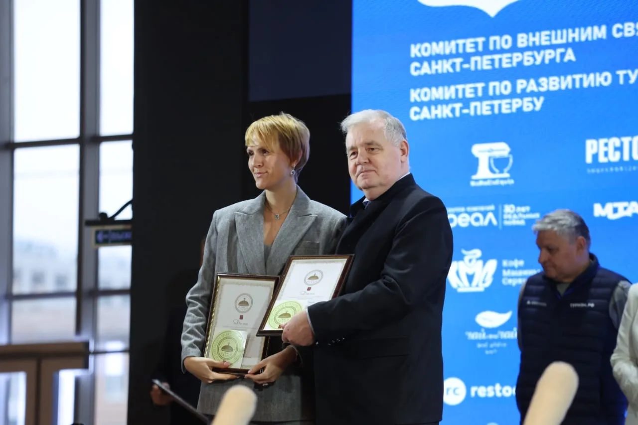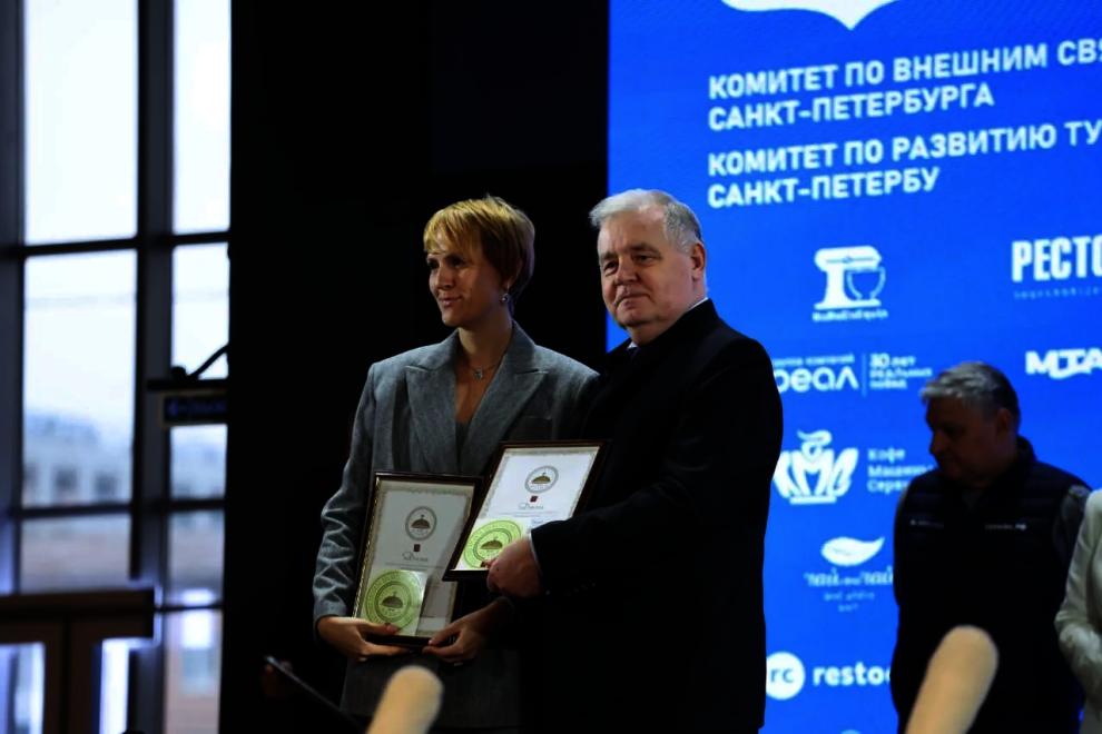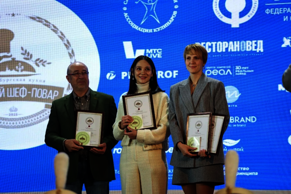 Руководитель проекта Сергей Марков вручил дипломы участников проекта Правительства Санкт‑Петербурга «Петербургская кухня» генеральному директору отеля «Вавельберг» Марии Даниловой, со-основателю, шеф-кондитеру и автору гастрономической концепции «Бистро54» Анне Красовской и учредителю гастробара CARRE Валерию Фенько.