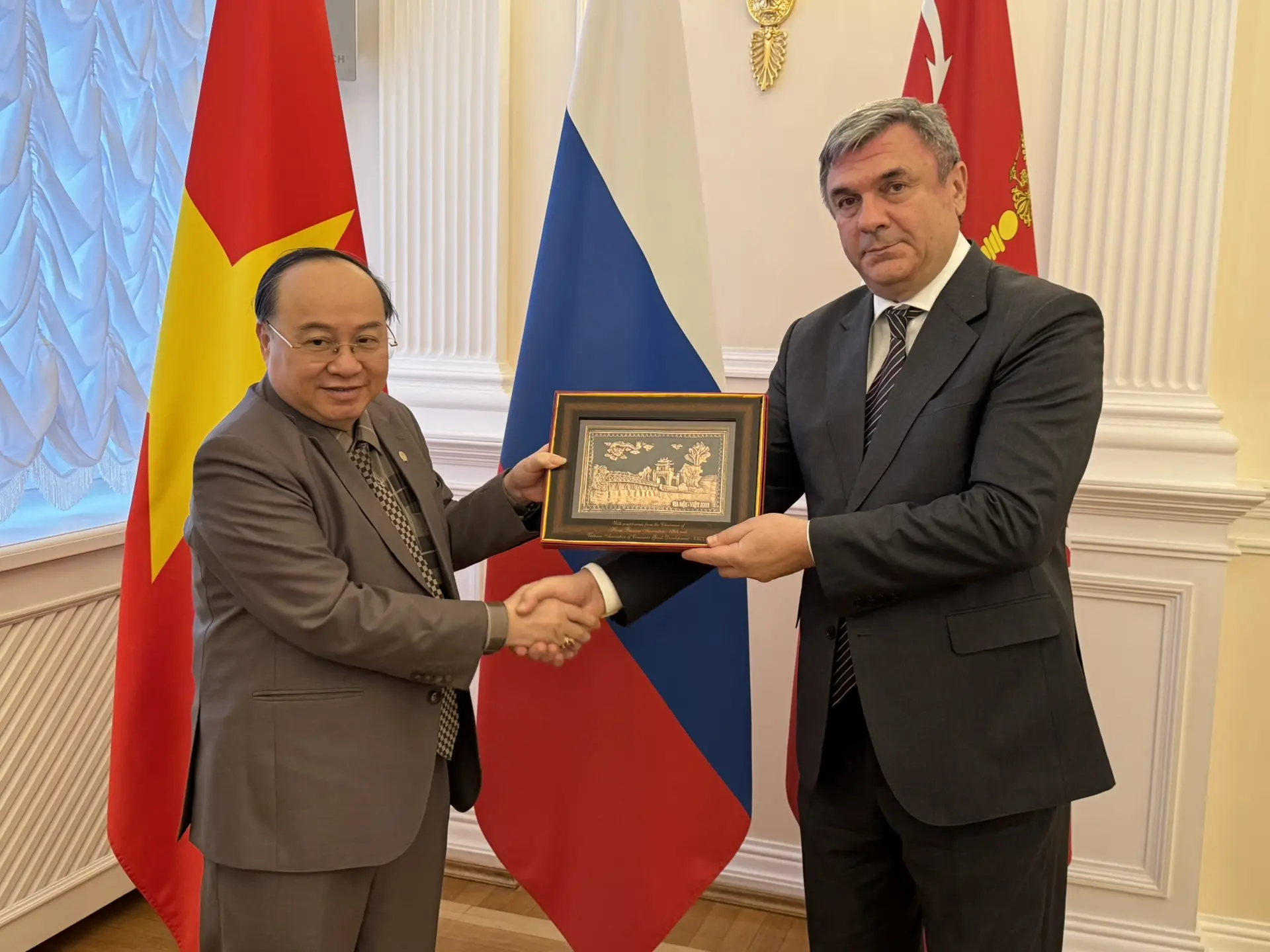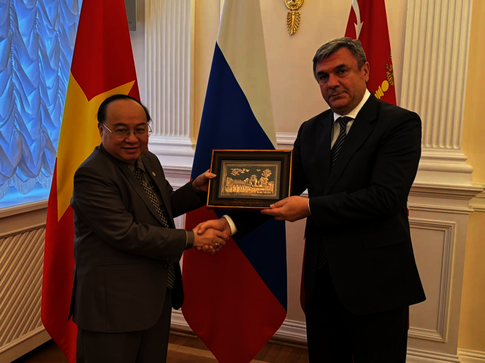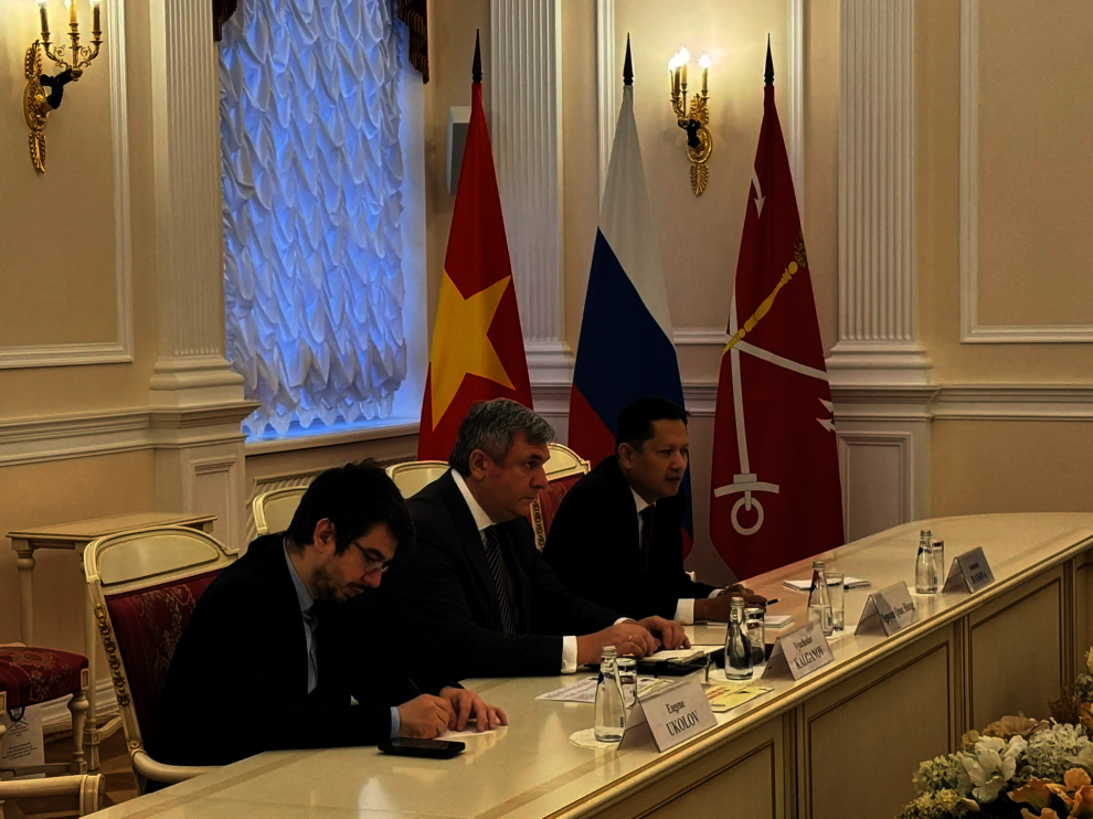 В Санкт‑Петербург для участия в VII Международном Муниципальном Форуме БРИКС прибыла делегация Ассоциации бизнесменов Ханоя (HBA) и Вьетнамской ассоциации продвижения товаров народного потребления (VACOD) во главе с председателем Нгуен Хонг Шоном.