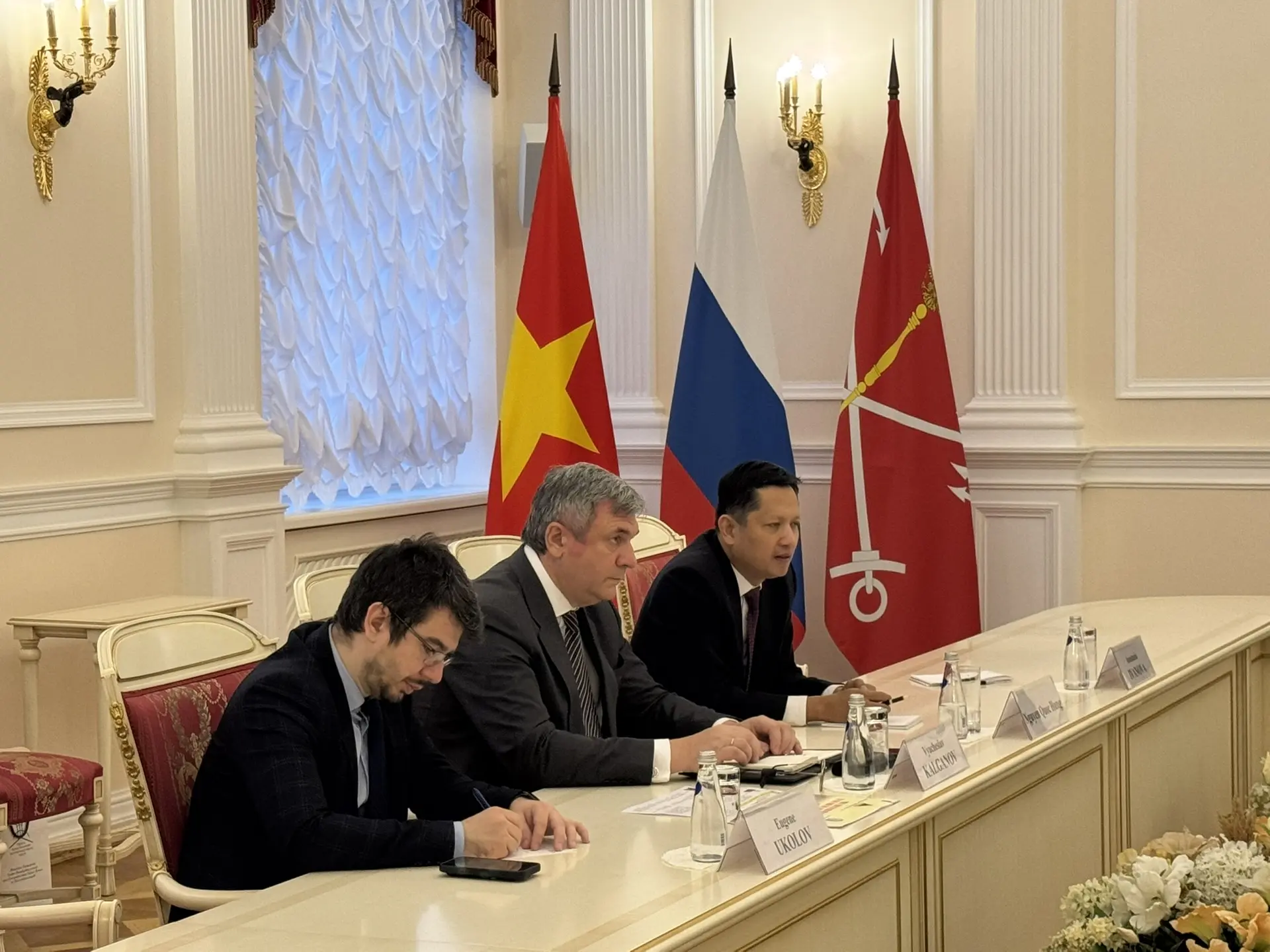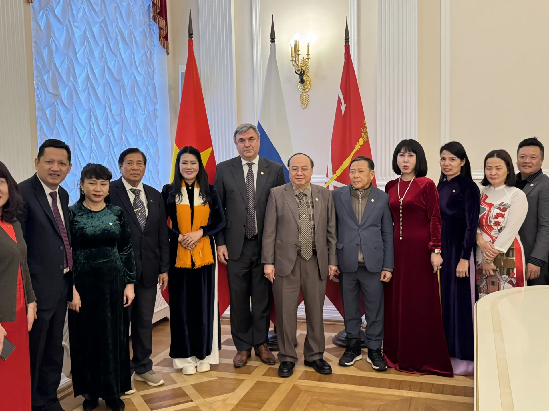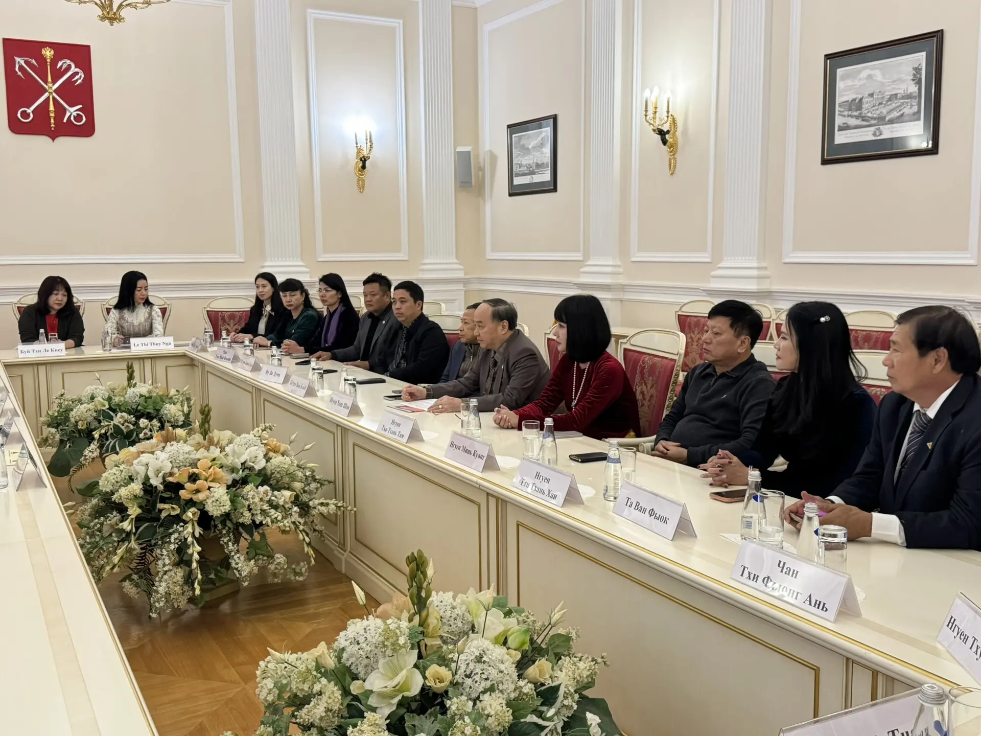Программа пребывания гостей из Вьетнама в Северной столице России открылась посещением Смольного. В ходе визита прошла рабочая встреча с руководством Комитета по внешним связям Санкт‑Петербурга. В переговорах также принял участие директор Фонда «Традиция и дружба», заместитель председателя Союза вьетнамских организаций в Российской Федерации Нгуен Куок Хунг.