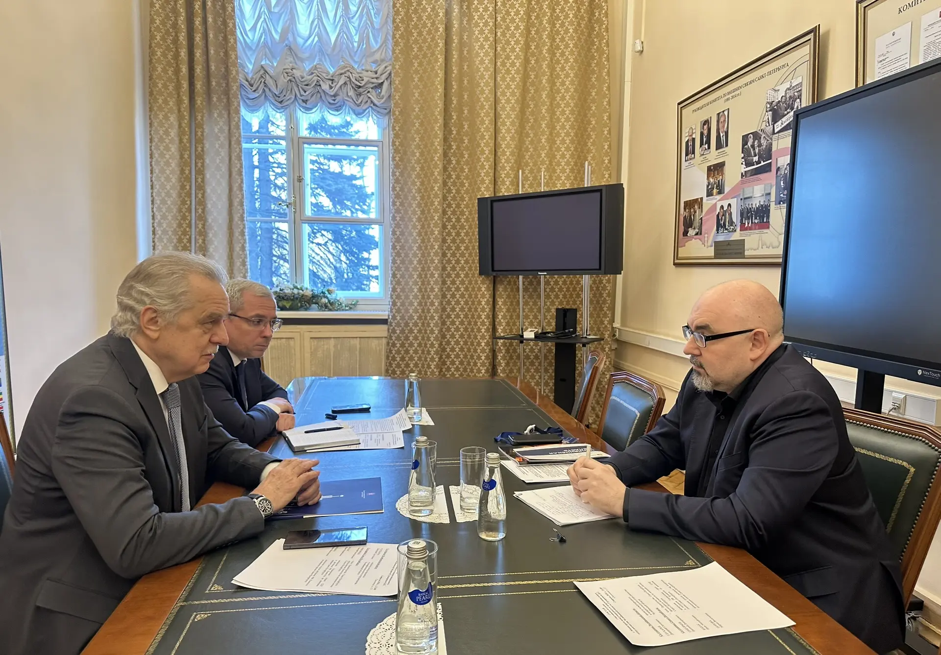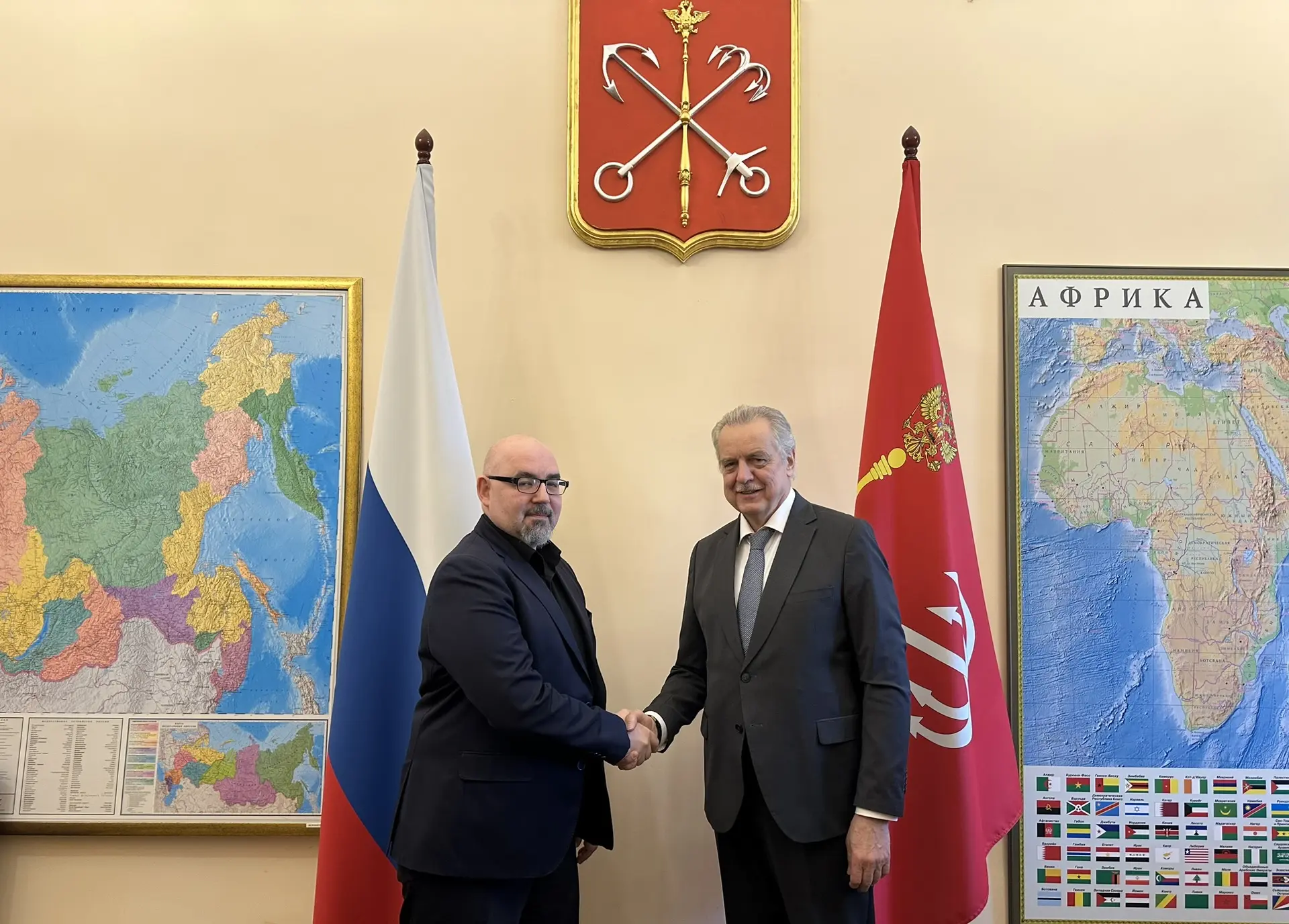 2 апреля в Смольном состоялась рабочая встреча Члена Правительства Санкт‑Петербурга — председателя Комитета по внешним связям Санкт‑Петербурга Евгения Григорьева с министром международного и межрегионального сотрудничества Челябинской области Дмитрием Глухаревым.