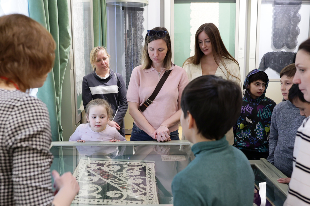 В первый день пребывания в столице региона семьи бойцов из Петербурга смогли оценить уникальный стиль архитектуры Вологды и изделия вологодских мастериц из кружева.