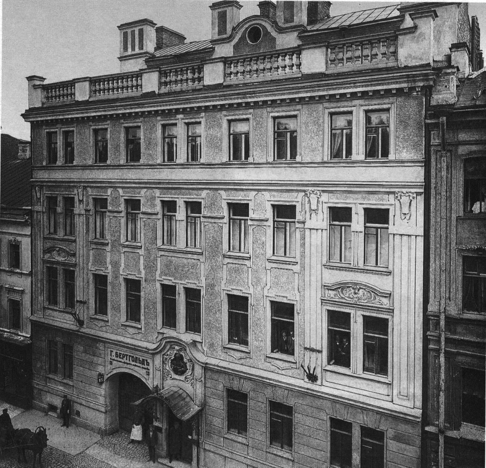 Окончательный проект доходного дома для промышленной фирмы «Г. Бертгольд. Словолитня и фабрика медных линеек» был выполнен в 1900 году петербургским архитектором Василием Васильевичем Шаубом по эскизному проекту немецкого архитектора Макса Мейдингера.