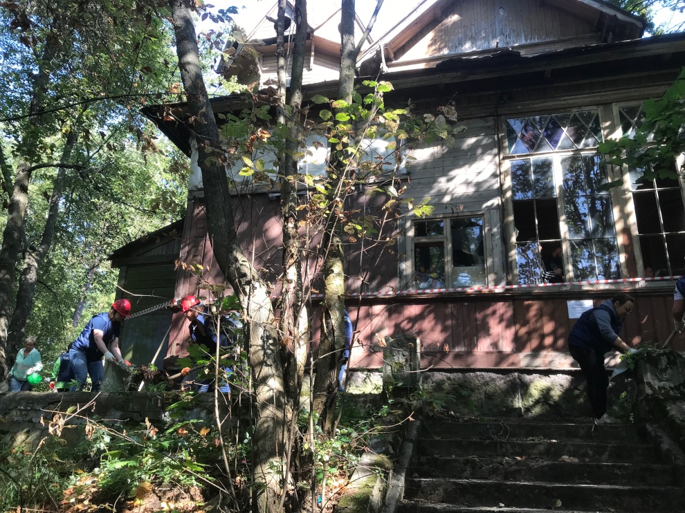 В субботу, 31 августа состоялась волонтерская акция по сохранению выявленного объекта культурного наследия «Дача Ридингер» (И.С. Крючкова) на Приморском шоссе, 394, корп. 6 Л.