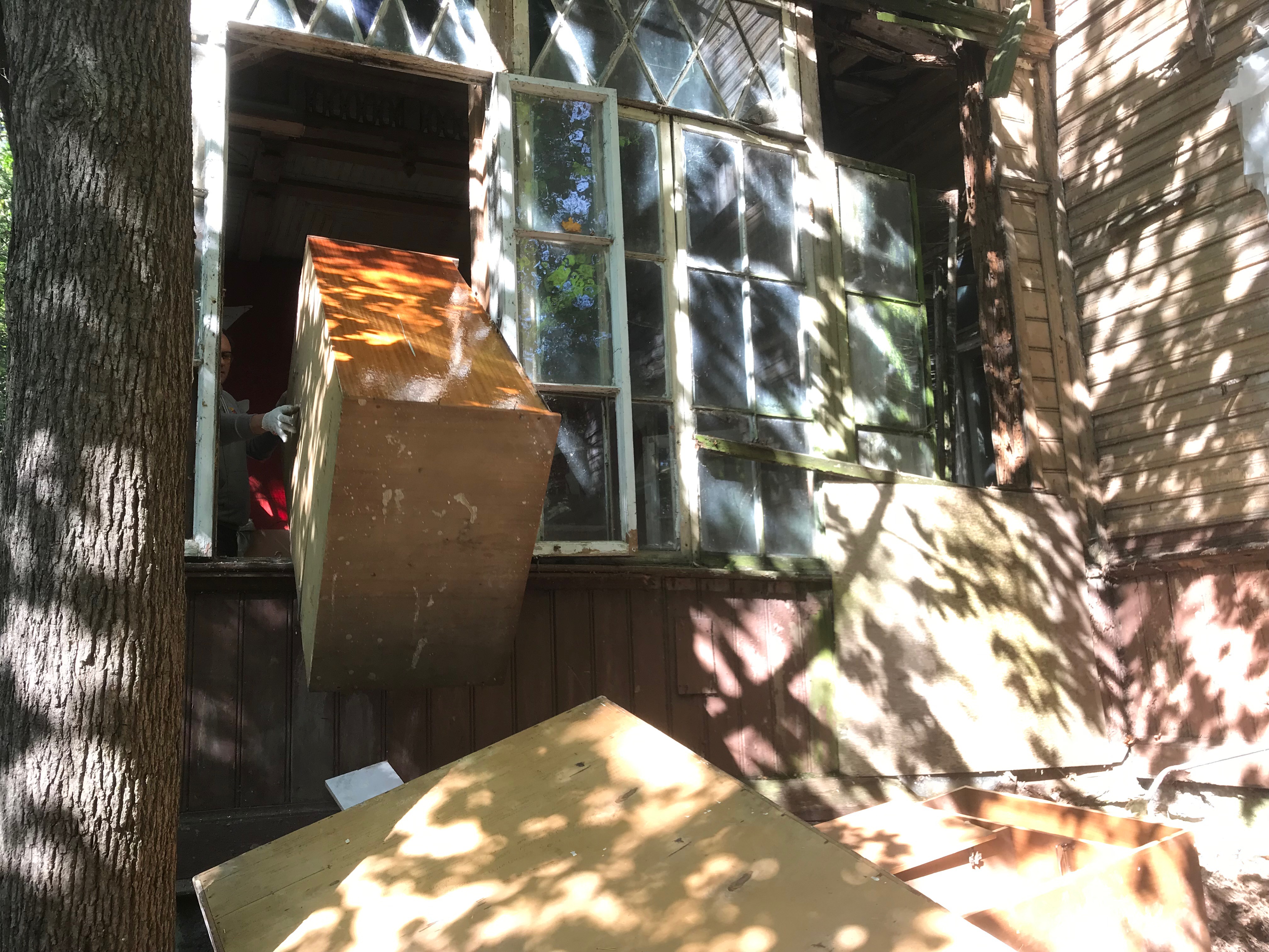 Участники волонтерской акции вывезли мусор из здания и с территории и вырубили самосевную растительность. В течение сентября под руководством профессиональных реставраторов будут проводиться работы по консервации здания, в том числе ремонт кровли в местах протечек, зашивка оконные проемы, огне-биозащитная обработка деревянных конструкций крыши и разборка аварийного участка поздней (советского периода) пристройки.