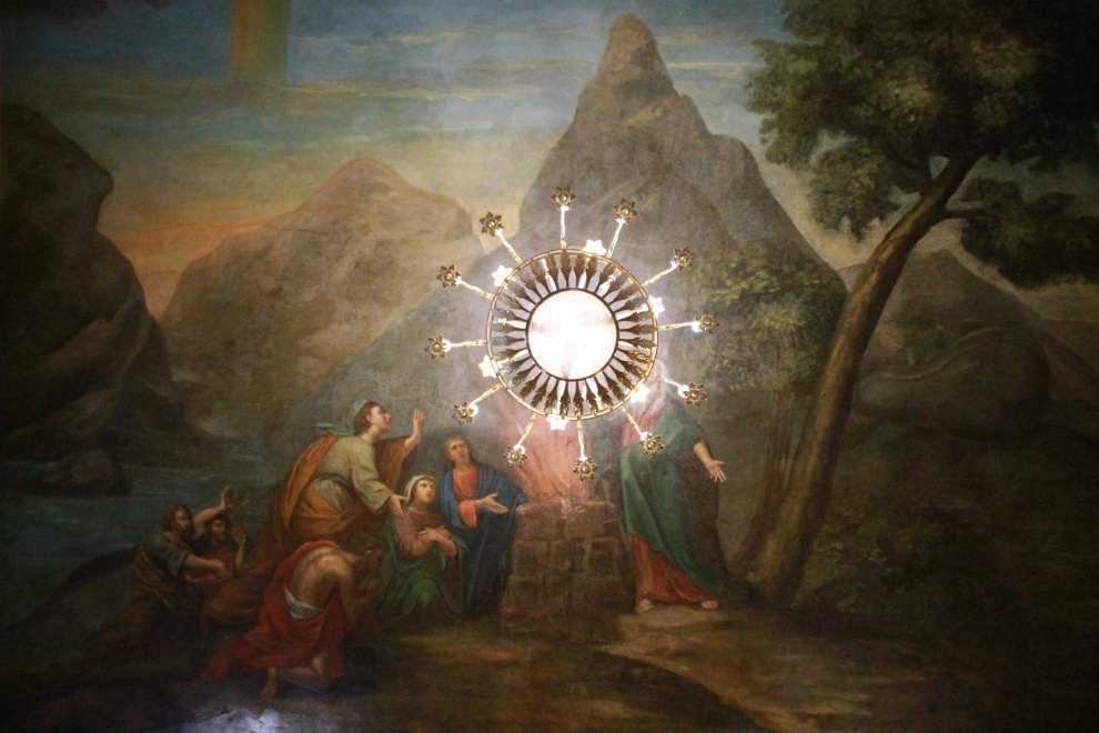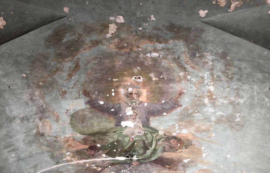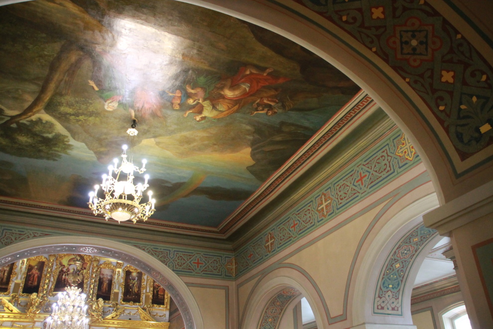 На втором этаже, где располагается ныне действующий храм, в центральной части Крестовоздвиженского придела на перекрытии постепенно было раскрыто живописное изображение на библейский сюжет: Ной приносит благодарственную жертву Богу после Всемирного потопа и видит радугу – знамение Завета. Размер плафона – около 100 квадратных метров.