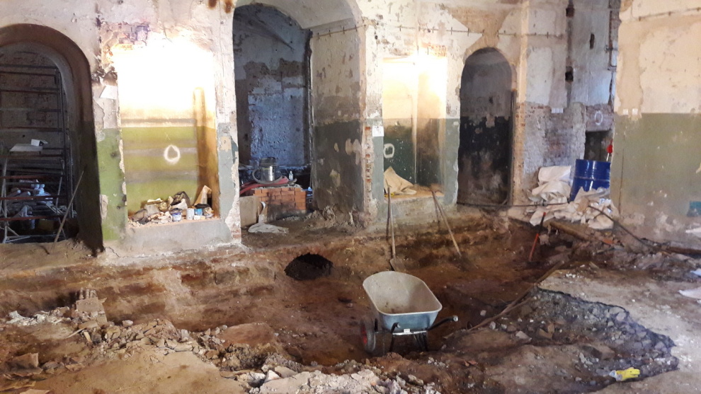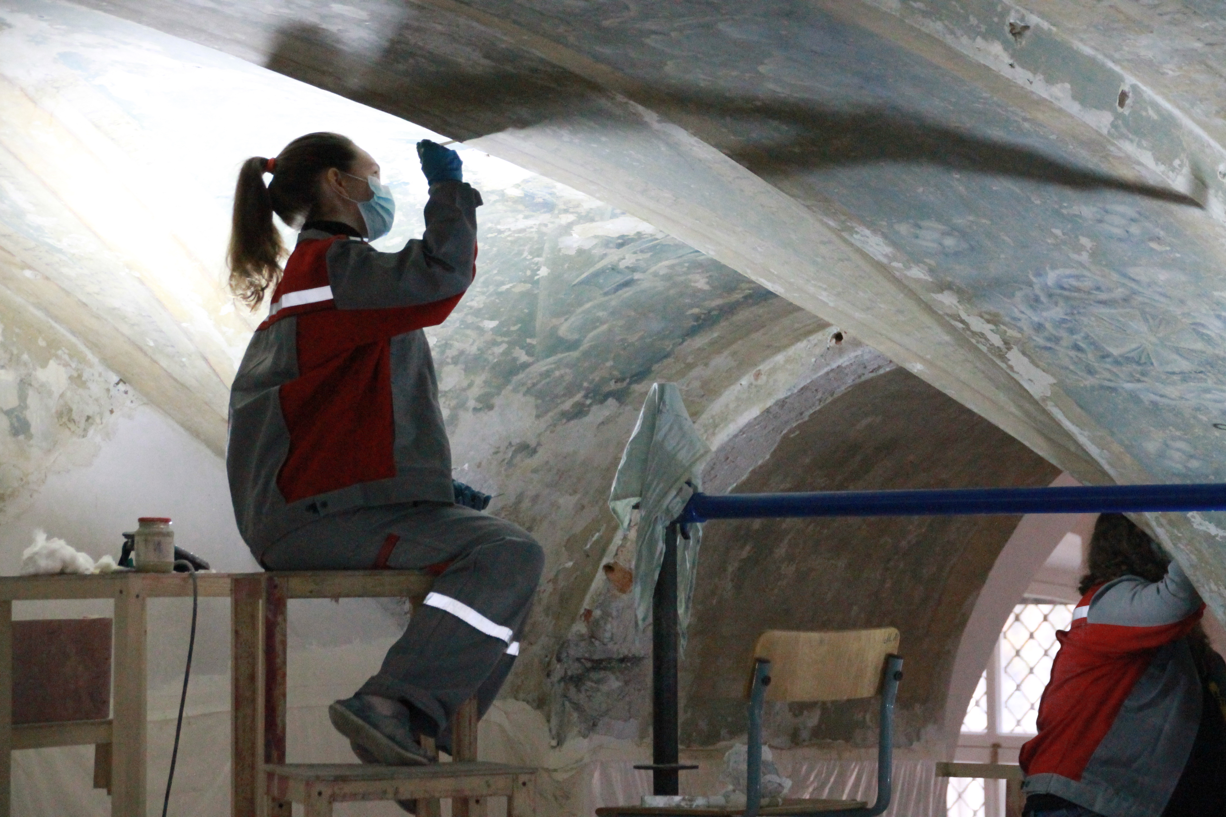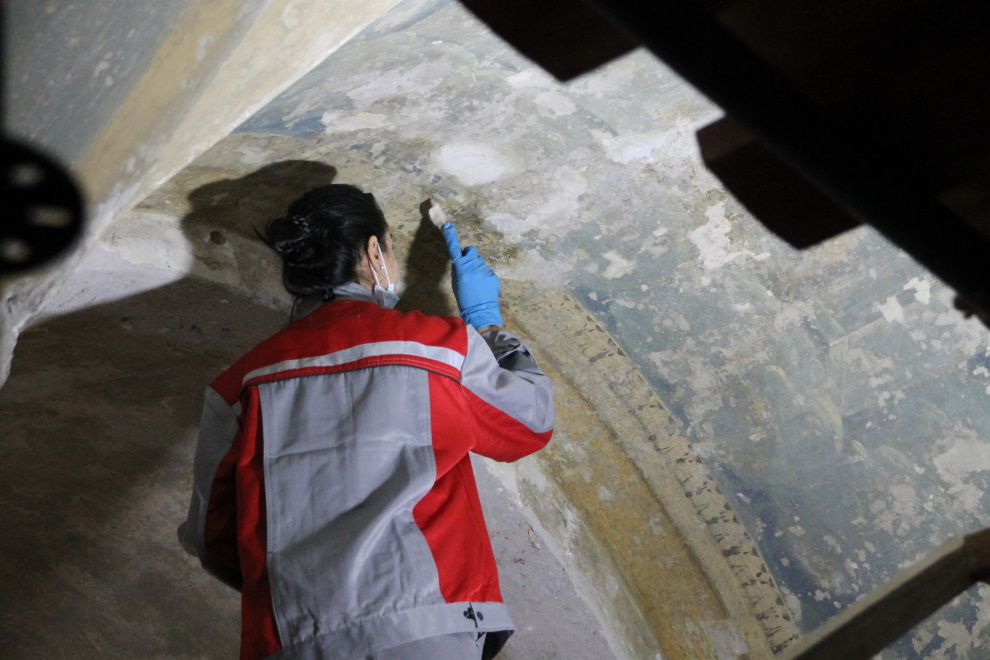 Сейчас завершается первый этап работ – расчистка и укрепление найденных фрагментов. Кроме того с помощью инъекций мы укрепляем штукатурный слой».