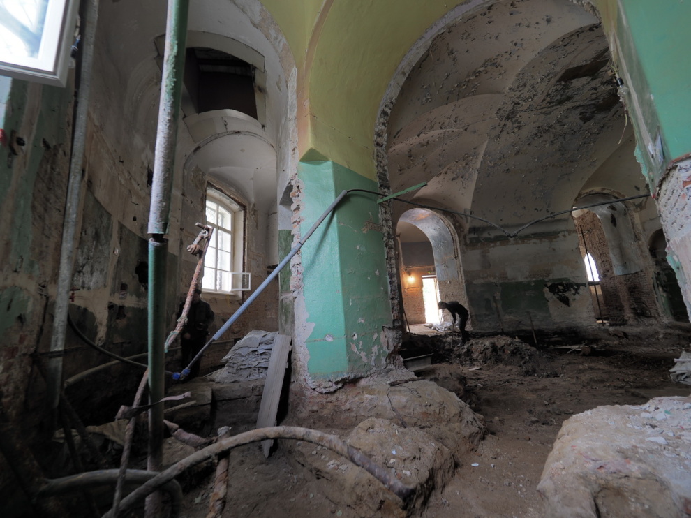 «До начала реставрации во всех приделах Нижнего храма лежал асфальт, левый придел был занят теплоцентром, душевыми, туалетом, в алтаре находился огромный электрощитовой узел. Прежде, чем КГИОП смог приступить к работам, силами нашей общины была проведена реконструкция всех коммуникаций, - рассказывает настоятель церкви Благовещения Пресвятой Богородицы протоиерей Андрей Дьяконов. - Конечно, для нас было большой неожиданностью и большой радостью, что, оказывается, живопись на сводах уцелела. Было очень трудно предположить, что в таких условиях может хоть что-то сохраниться».