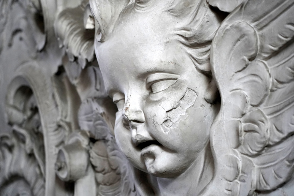 Утраты фрагментов скульптурных композиций мелкие и единичные. При проведении труб водяного отопления в середине XX века у многих фигур ангелов были отбиты ножки, отдельные пальцы, ветки растительного декора.