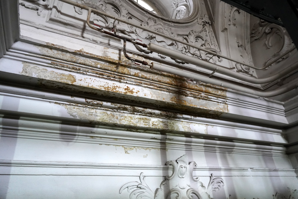Одним их важнейших условий обеспечения сохранности архитектурно-художественной отделки является создание и поддержание в интерьере соответствующего температурно-влажностного режима. В соответствии с результатами технического обследования подлежат полной замене системы отопления и вентиляции, электроснабжения и пожаротушения.