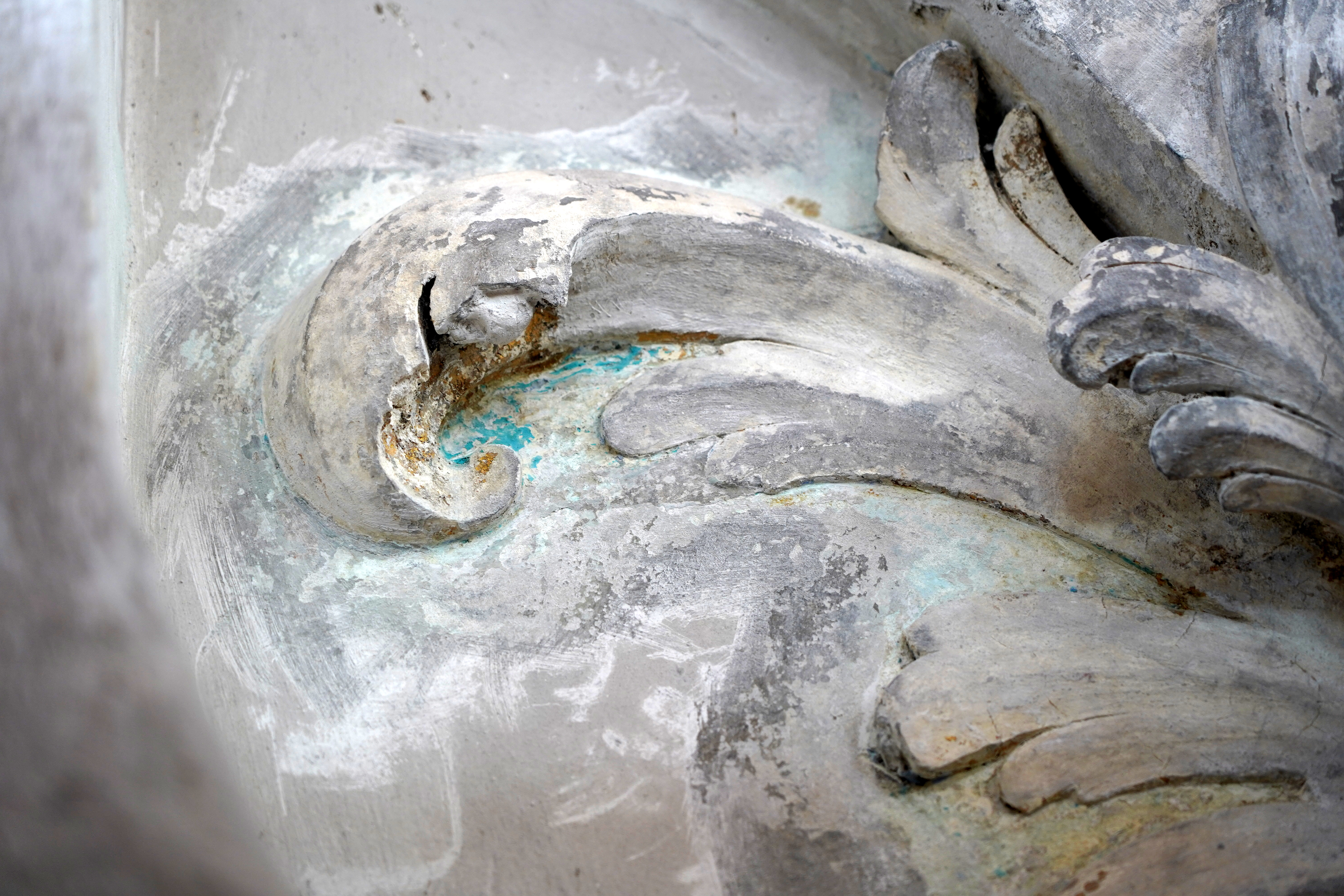 В течение двух с половиной веков стены окрашивались разными оттенками. При выборе цветового решения по результатам расчисток и химического анализа образцов штукатурки специалисты будут ориентироваться на слои краски, с максимальной достоверностью приближенным к первоначальному виду.