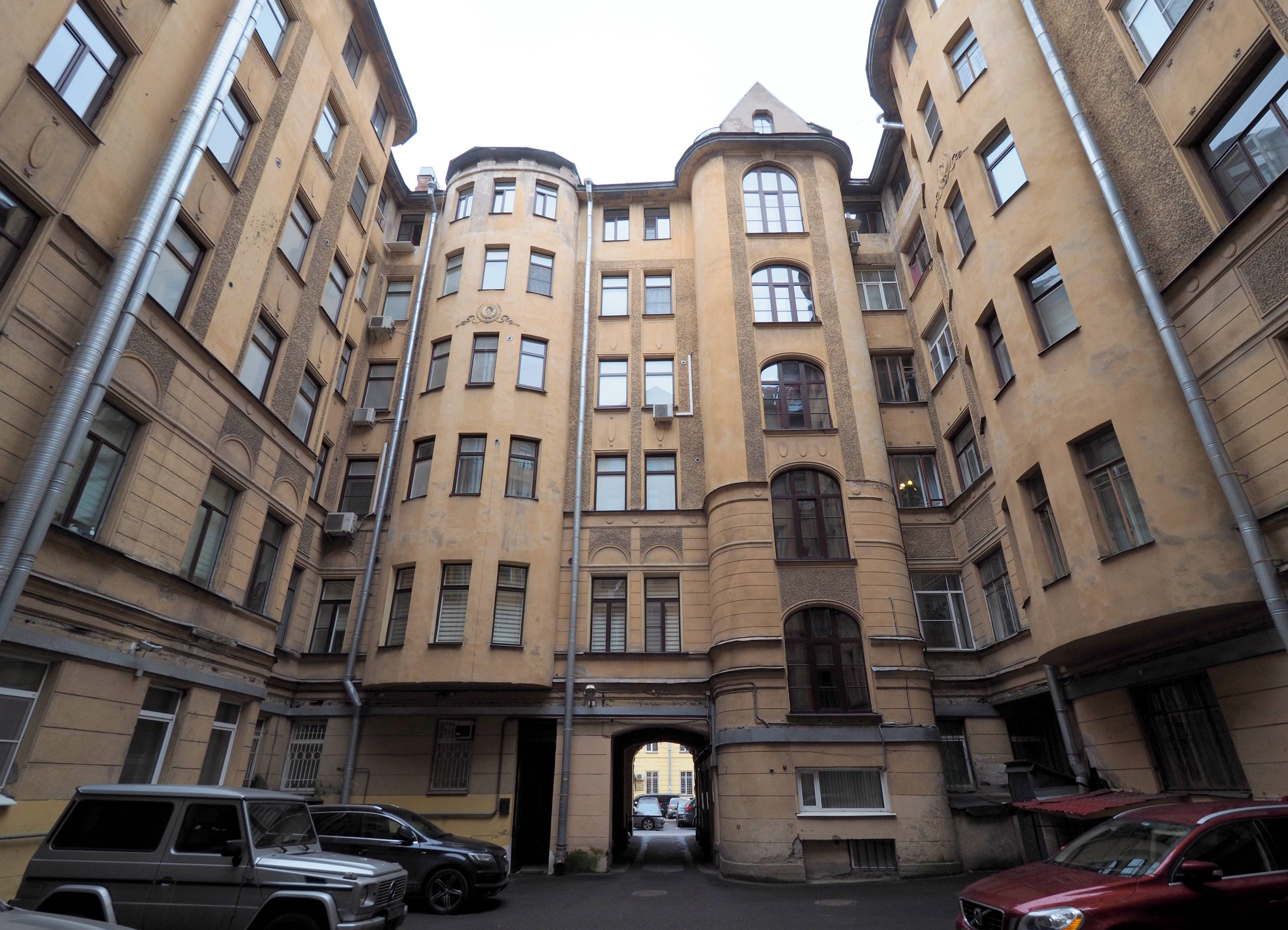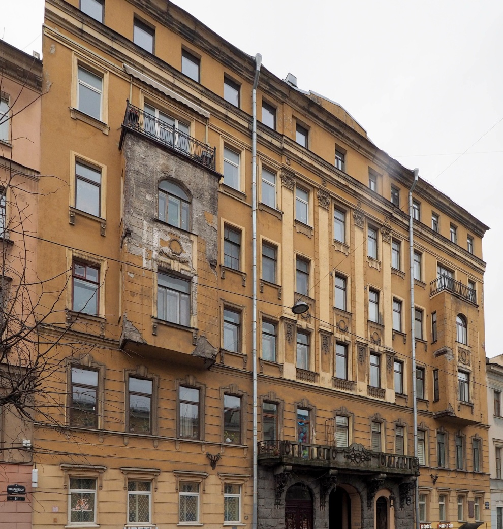 В доме на Захарьевской в 1910-х годах жили семьи князей Урусовых: Владимира Михайловича, гофмейстера Высочайшего двора, действительного статского советника, члена Государственного совета, и Михаила Александровича, гвардии ротмистра, сотрудника Военного министерства. Одновременно помещения над конторами в этом доме занимали присяжные поверенные.