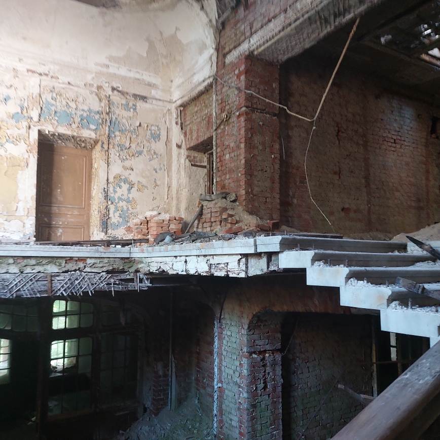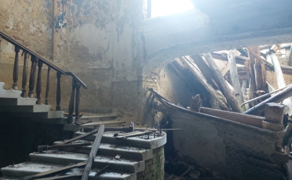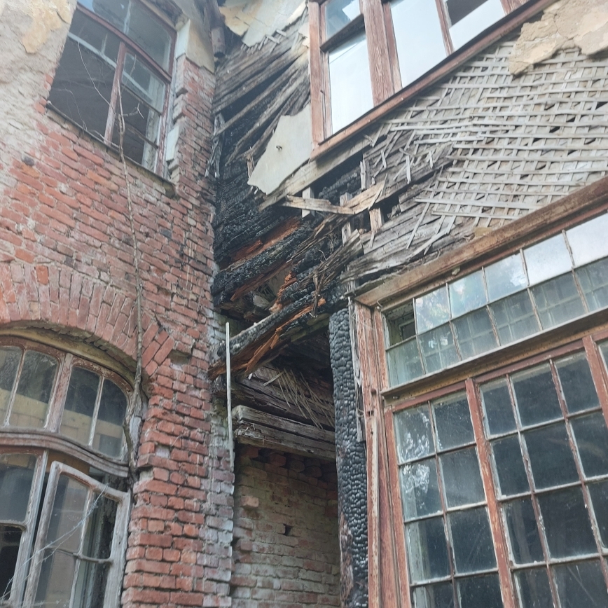 В августе 2022 года КГИОП в рамках инспекционного визита установлено, что работы не выполнены, фасады находятся в ненадлежащем техническом состоянии, наблюдается деструкция кирпичной кладки, утрата штукатурного слоя, следы пожара, частично отсутствуют оконные и дверные заполнения. Территория захламлена бытовым мусором. В интерьерах зафиксирована утрата штукатурного слоя, архитектурно-художественных элементов и ограждения парадной лестницы, на полу навалена штукатурка и строительный мусор.