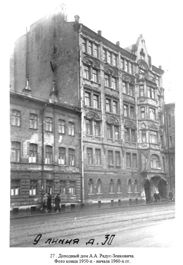 Распоряжением председателя КГИОП Сергея Макарова «Дом А.А. Радус-Зенковича» (9-я линия В.О., д. 30, лит. А) включён в единый государственный реестр в качестве объекта культурного наследия регионального значения.