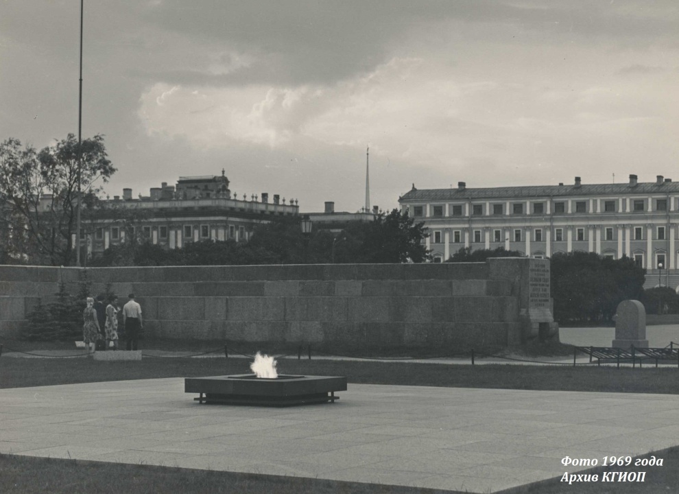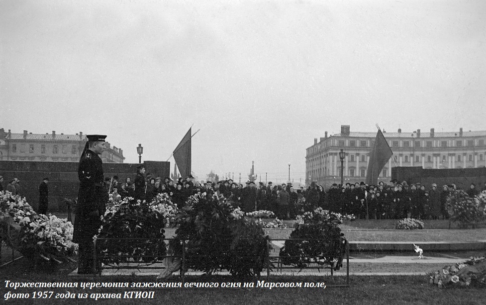 В канун сорокалетия Октябрьской революции в 1957 году на Марсовом поле в центре памятника «Борцам революции» на площадке внутри гранитного каре был торжественно зажжён Вечный огонь – первый в СССР.