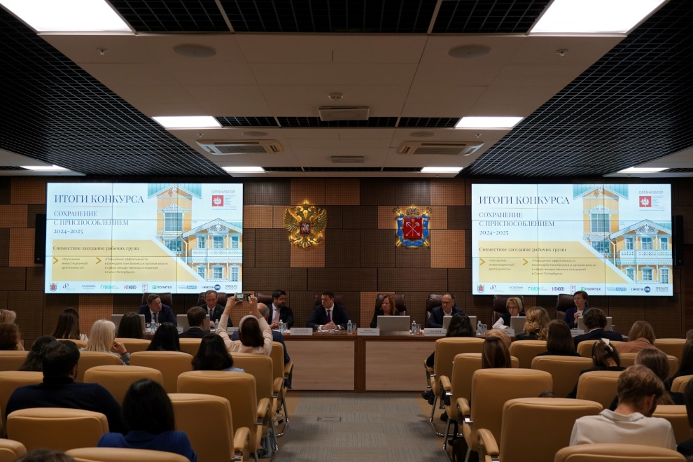 На совместном заседании рабочих групп «Улучшение инвестиционной деятельности» и «Повышение эффективности взаимодействия бизнеса и органов власти в сфере имущественных отношений в Санкт‑Петербурге» Штаба по улучшению условий ведения бизнеса состоялось торжественное подведение итогов конкурса «Сохранение с приспособлением 2024-2025».