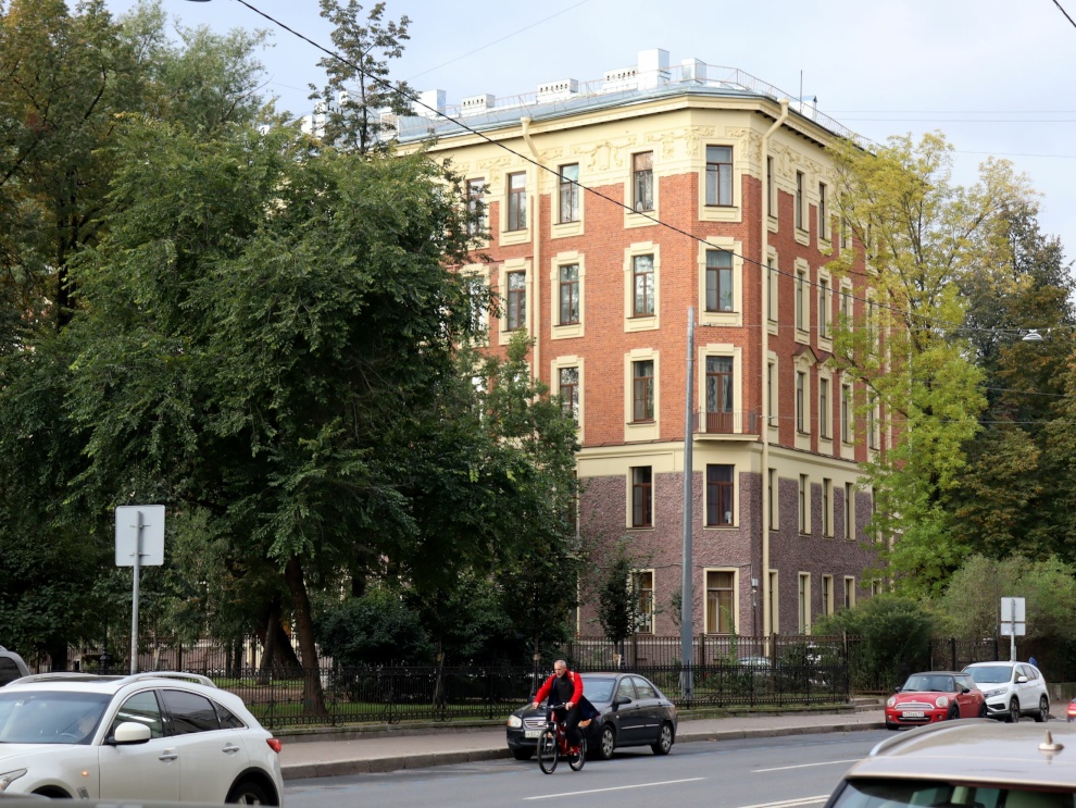 Здание в стиле модерн построено в 1902-1904 годах по проекту Альберта Ивановича Стюнкеля. Оно входило в состав комплекса Евангелической женской больницы как жилой корпус, а после 1917 года используется как многоквартирный дом.