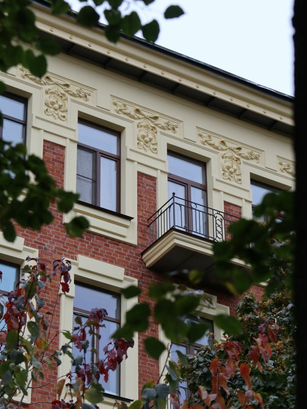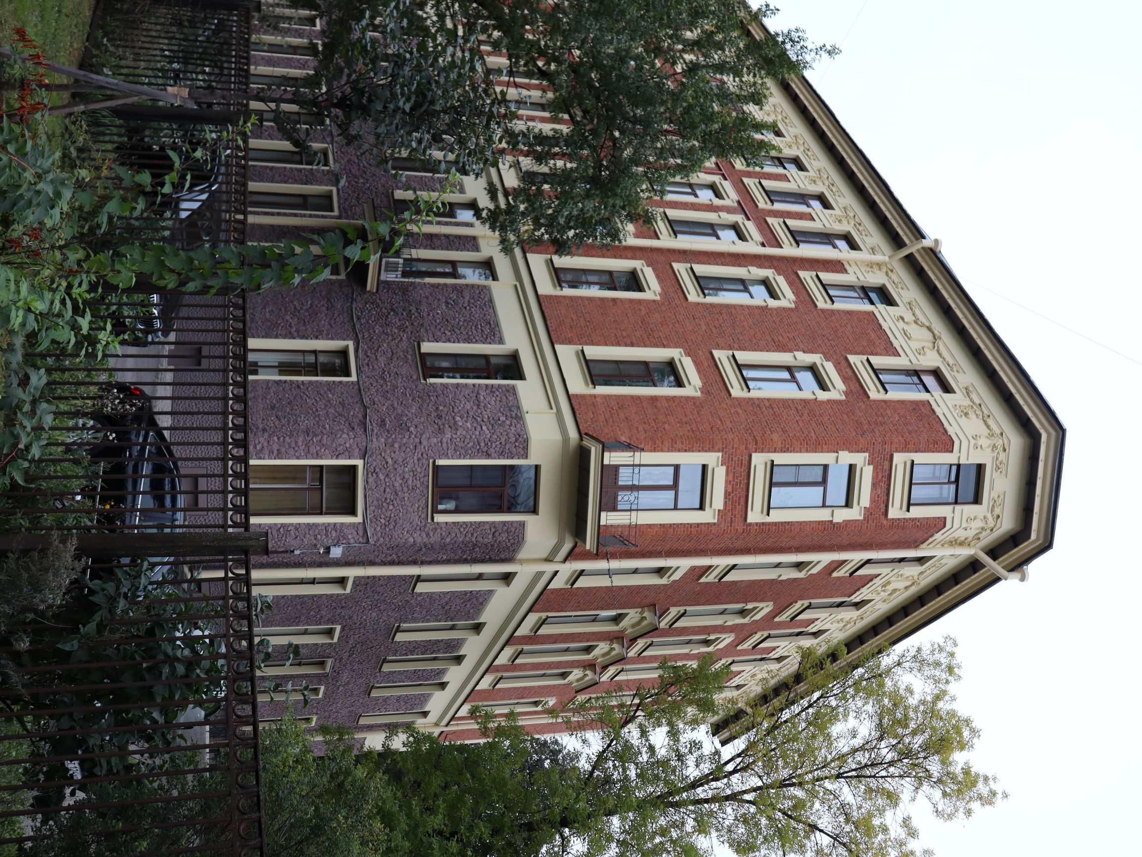 Реставрация лицевых и дворовых фасадов памятников регионального значения «Дом жилой» в составе комплекса «Больница евангелическая женская» ведется по программе КГИОП.
