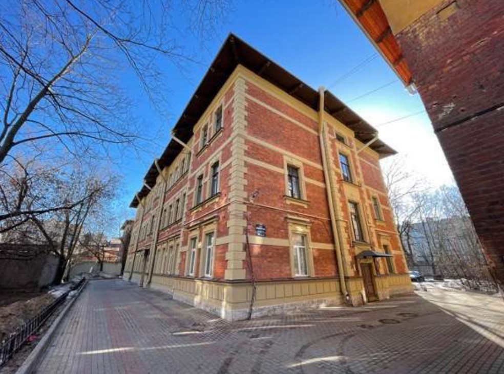 В 1837 году здесь располагалась красильная фабрика купца Ф. Каттани, основанная в начале XIX века. Она представляла собой ряд небольших деревянных строений, выходивших как на Ждановскую набережную, так и на Новоладожскую и Большую Спасскую улицы. Большая часть участка оставалась незастроенной.