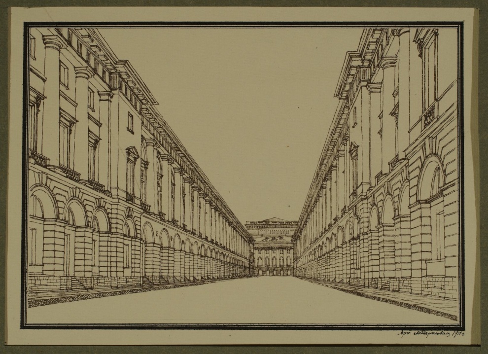 КГИОП предоставил для выставки 11 экспонатов из своего архивного собрания: пять подлинных чертежей К.И. Росси, автограф зодчего, а также автолитографии Марианны Зеноновны Тарановской, в 1951 году выполнившей графическую реконструкцию ансамбля Театральной площади (Островского) и улицы Зодчего Росси в соответствии с замыслом архитектора.