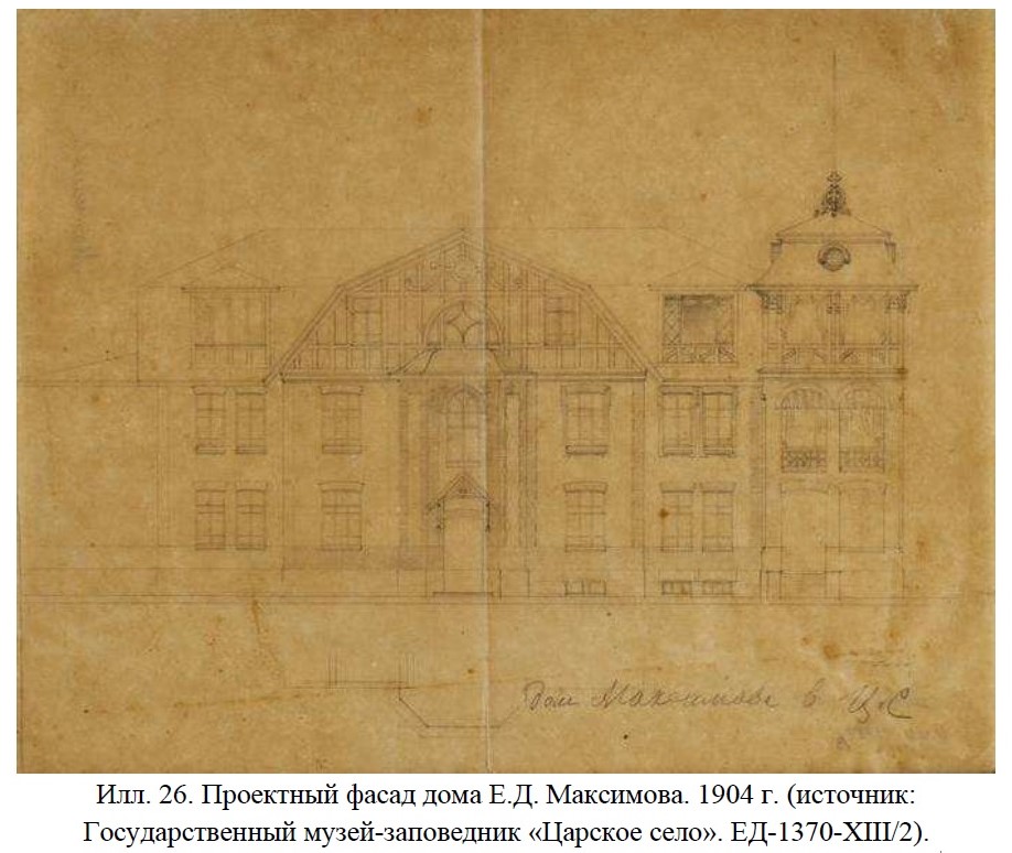 В июле 1901 года действительный статский советник Евгений Дмитриевич Максимов на имя своей супруги Татьяны Андреевны покупает в Царском Селе участок под № 6, располагавшийся по Новой улице. В том же году по проекту архитектора Михаила Фёдоровича Гейслера здесь возводится двухэтажный деревянный дом с каменными и деревянными службами.