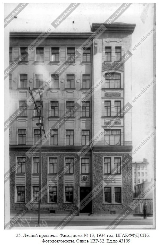 После 1917 года квартиры в доме стали коммунальными, и в одной из них поселился молодой большевик, инструктор историко-партийной комиссии Института истории ВКП(б) Леонид Николаев с семьёй. В 1934 году Леонид Николаев убил руководителя Ленинградской организации ВКП(б) Сергея Мироновича Кирова. Это роковое убийство дало толчок массовым репрессиям в стране, пик которых пришёлся на 1937 год. Одними из первых репрессированных стали некоторые жители дома на Лесном проспекте, 13 — друзья детства и просто соседи Леонида Николаева.