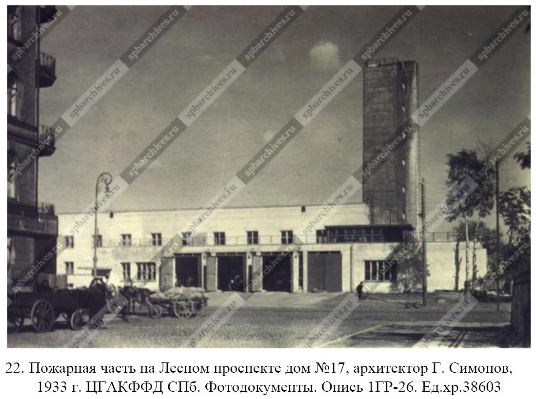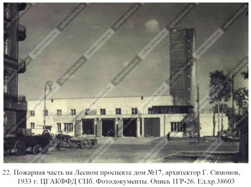 В разработке проекта пожарной части на Лесном проспекте, 17 также принимал участие архитектор Григорий Александрович Симонов.