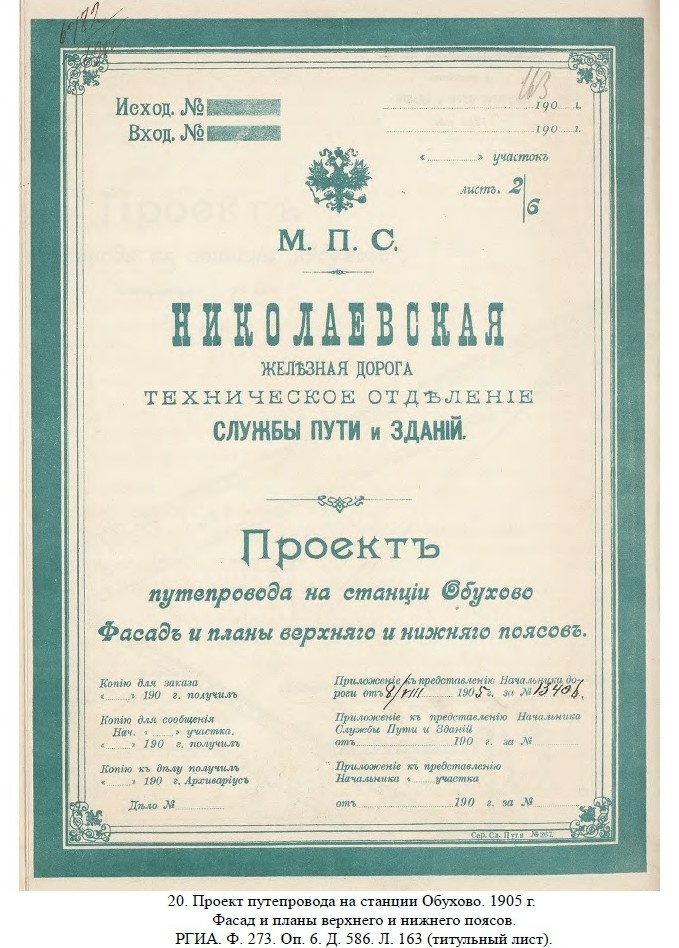 В 1905 году техническим отделом Управления железных дорог Министерства путей сообщения был составлен проект путепровода на станции Обухово.