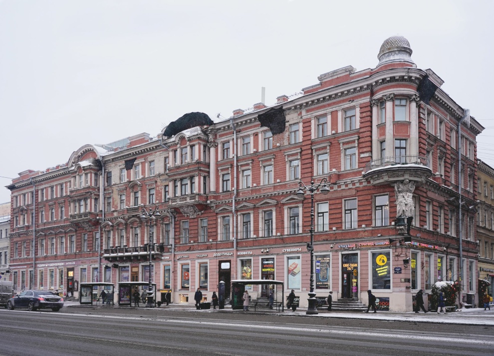 Здание на пересечении Невского проспекта и Малой Садовой улицы, образовано из нескольких разновременных корпусов. Оно известно, прежде всего, тем, что в начале XX века здесь располагалось фотоателье Карла Буллы. В 2002 году на фасаде установлен памятный знак «Блокадный репродуктор».