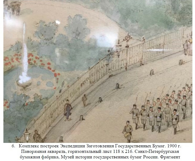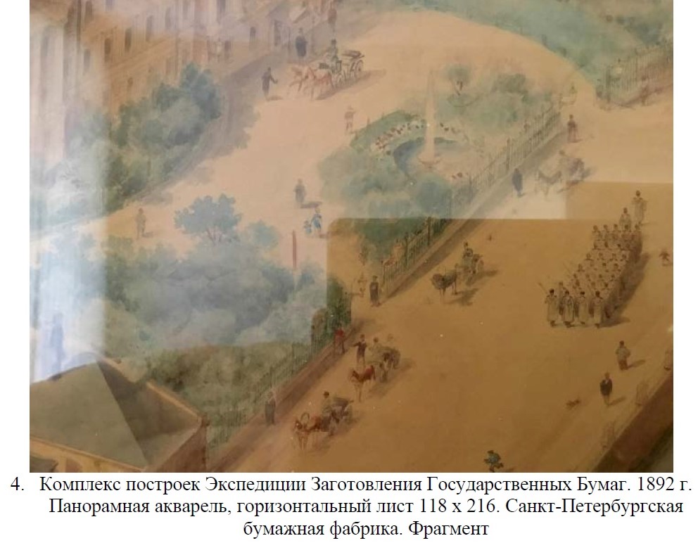 Особое место в иконографии Экспедиции Заготовления Государственных Бумаг занимает серия панорамных изображений 1892 — около 1910 годов. На панорамных акварелях «Экспедиция Заготовления Государственных Бумаг. 1892 г.» и «Экспедиция Заготовления Государственных Бумаг. 1900 г.» изображена схожая с гравюрой 1886 года архитектурная ситуация вдоль набережной Фонтанки.