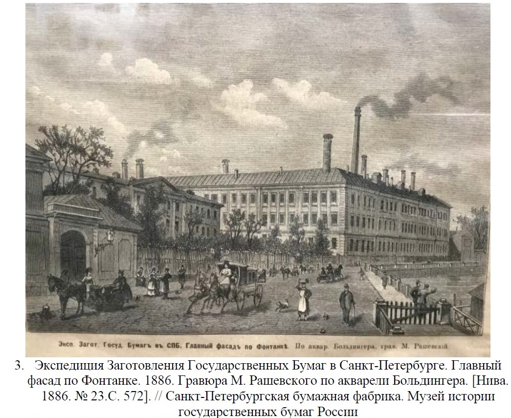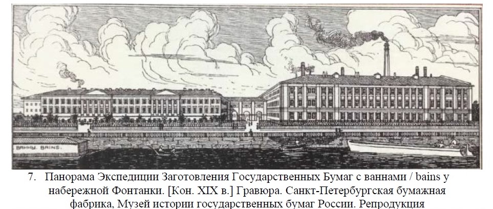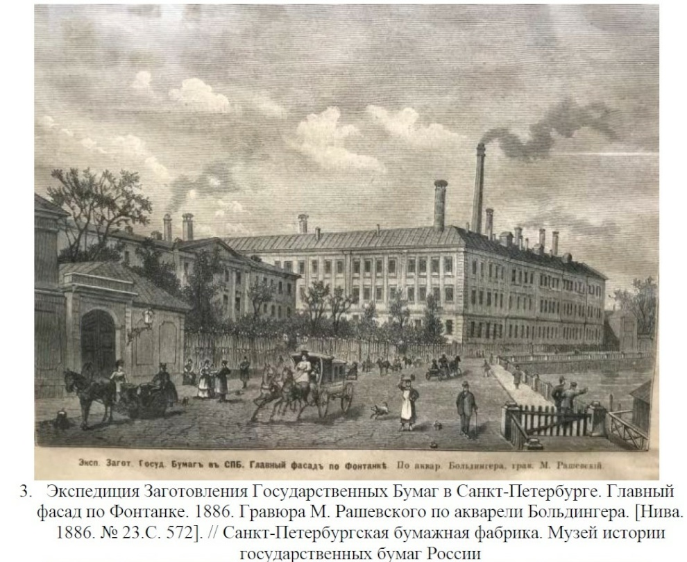 К началу ХХ века Экспедиция Заготовления Государственных Бумаг представляла собой характерный для Петербурга фабричный ансамбль. Его здания составляют замкнутую композицию с внутридворовыми производственными и служебными корпусами, воротными проездами, а лицевые корпуса и дымовые трубы формируют застройку набережной Фонтанки и Рижского проспекта.