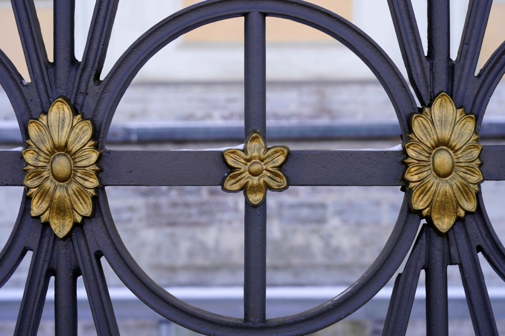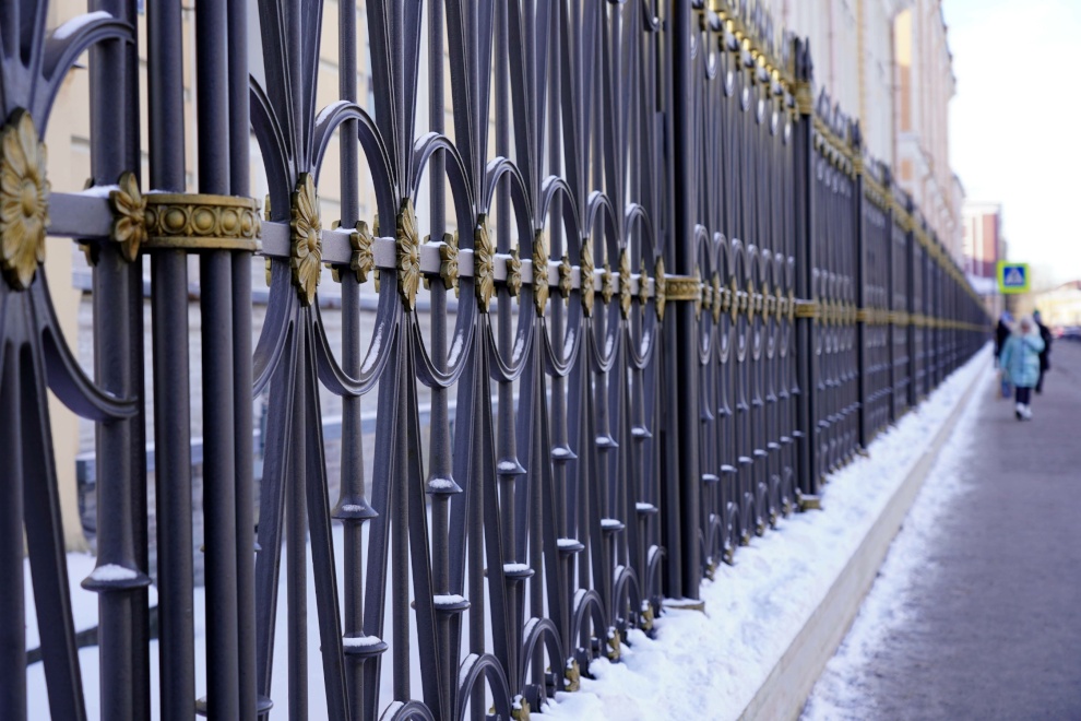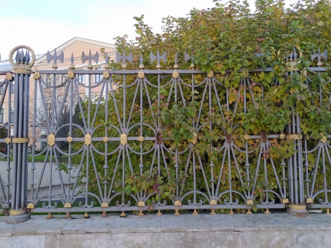 В условиях мастерской выполнена реставрация чугунных элементов: секций, столбов, створок.