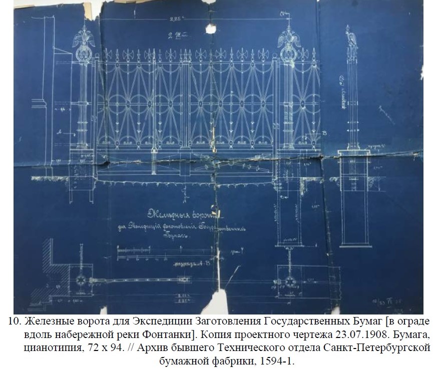 - Акт по результатам проведения государственной историко-культурной экспертизы проектной документации на проведение работ по сохранению объекта культурного наследия федерального значения «Ограда», расположенного по адресу: г. Санкт‑Петербург, наб. реки Фонтанки, 144, Рижский пр., 5, 7, входящего в состав объекта культурного наследия федерального значения «Экспедиция заготовления государственных бумаг» — «Проектная документация на проведение работ по ремонту и реставрации объекта культурного наследия федерального значения „Экспедиция заготовления государственных бумаг. Ограда“, расположенного по адресу: г. Санкт‑Петербург, наб. реки Фонтанки, 144, Рижский пр., 5, 7», шифр 0066−22, ООО «ГК Строй-Эксперт» в 2022 г., с целью определения соответствия проектной документации требованиям законодательства Российской Федерации в области государственной охраны объектов культурного наследия.