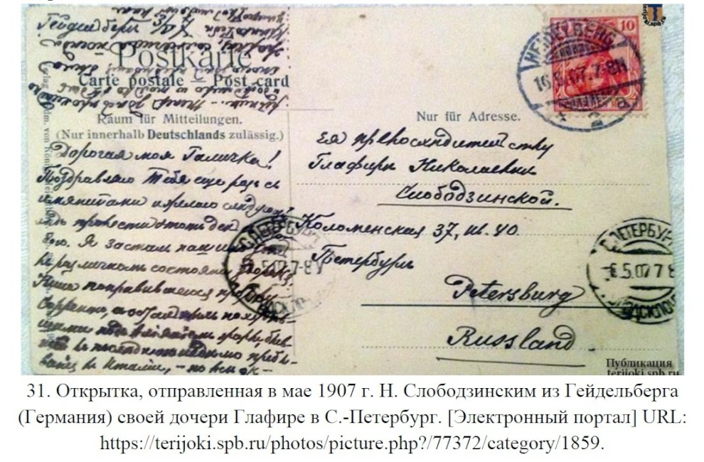 Использованы материалы государственной историко-культурной экспертизы выявленного объекта культурного наследия «Дача Н. Н. Слободзинского (Масленникова)» (государственный эксперт — Филипович М. И.), выполненной по заказу СПб ГКУ «Дирекция заказчика по ремонтно-реставрационным работам на памятниках истории и культуры».