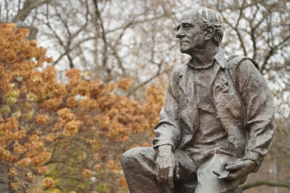Михаил Константинович Аникушин (1917–1997) — скульптор-монументалист, последователь соцреализма, один из основных ленинградских ваятелей послевоенной эпохи, педагог и общественный деятель; создатель ряда памятников поэту Александру Пушкину (в том числе, монумента на площади Искусств в Санкт‑Петербурге). Также он известен как мастер скульптурной ленинианы, создавал портретные бюсты и надгробия.
