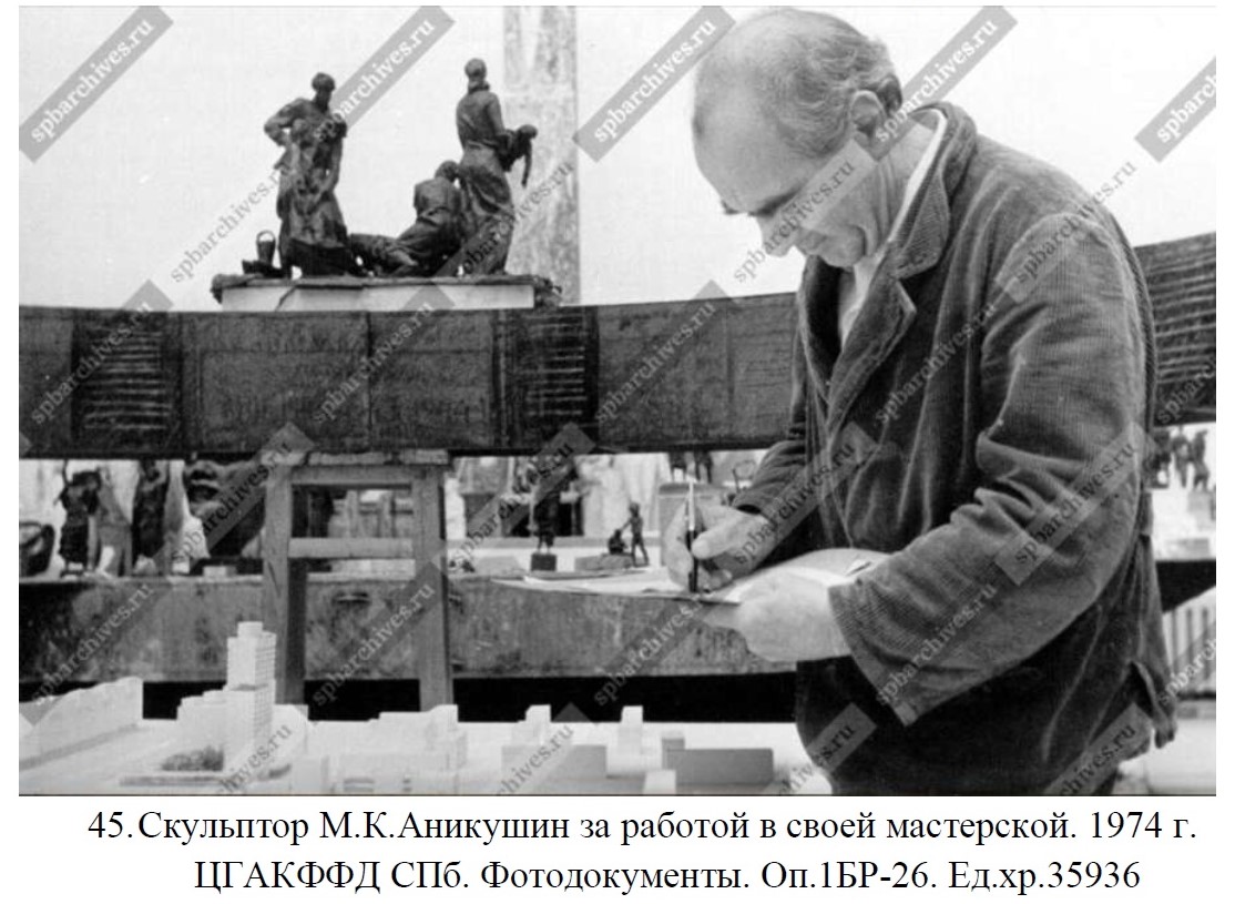 Ещё в 1953 году Аникушин в письме просил председателя Ленсовета о благоустроенной мастерской, в которой можно было бы выполнять крупные работы: «Мастерской нет. а скульпторы портят зрение, здоровье в сырых, тёмных, необорудованных самыми элементарными удобствами помещениях, где они выполняют высокоответственные, государственной важности работы».