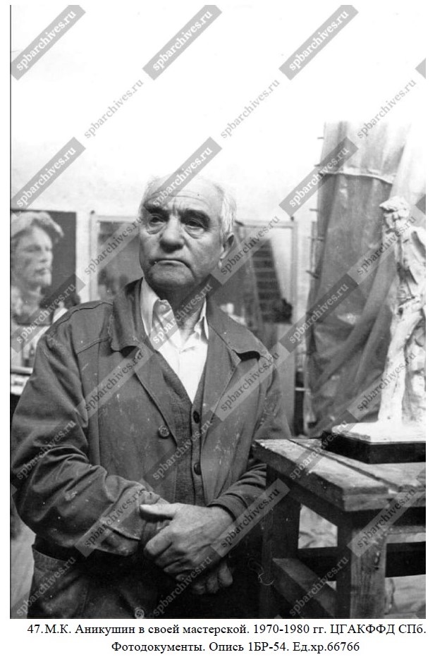 Использованы материмы государственной историко-культурной экспертизы выявленного объекта культурного наследия «Дом-мастерская М. К. Аникушина» (государственный эксперт — Овсянникова А. А.), выполненной по заказу СПб ГКУ «Дирекция заказчика по ремонтно-реставрационным работам на памятниках истории и культуры».